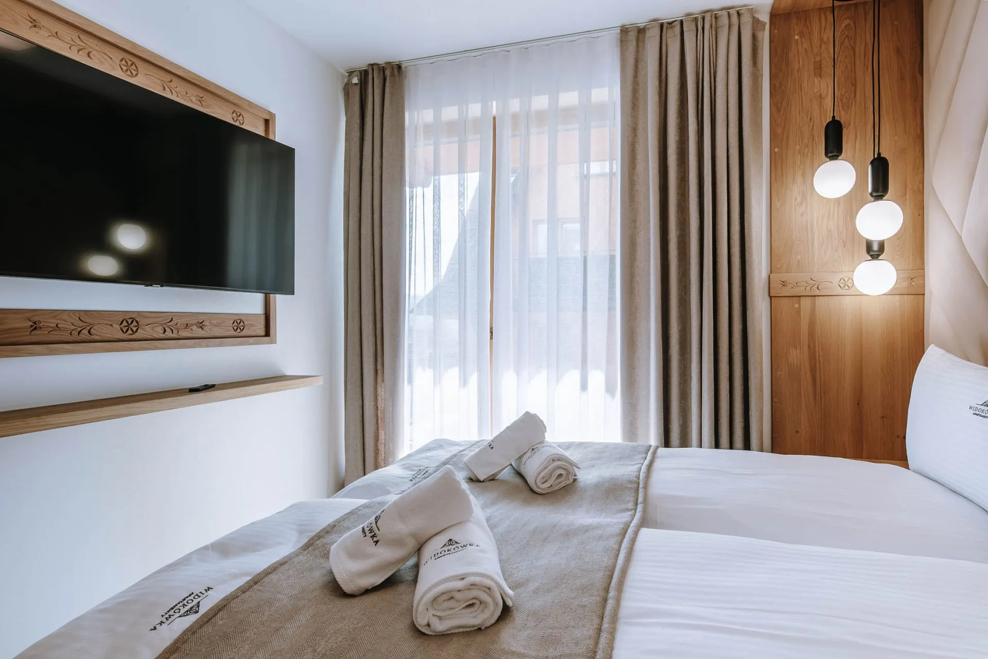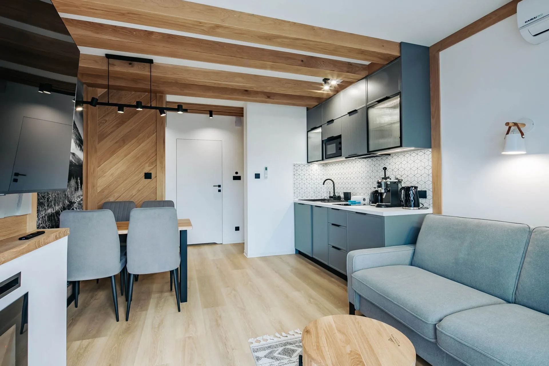 Apartamenty o wysokim standardzie w Kościelisku z przepięknym widokiem na Panoramę Tatr oraz SAUNĄ dostępną dla gości obiektu bezpłatnie. W budynku znajduje się 8 apartamentów, 4 apartamenty 6 osobowe oraz 4 apartamenty 4 osobowe, plus pralnia z której goście mogą korzystać bezpłatnie podczas swojego pobytu.