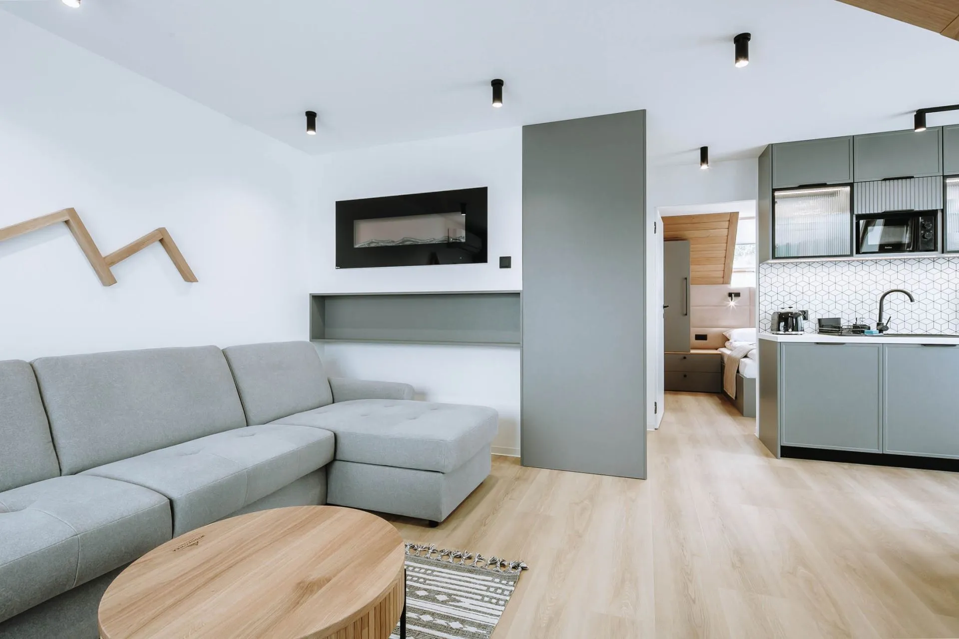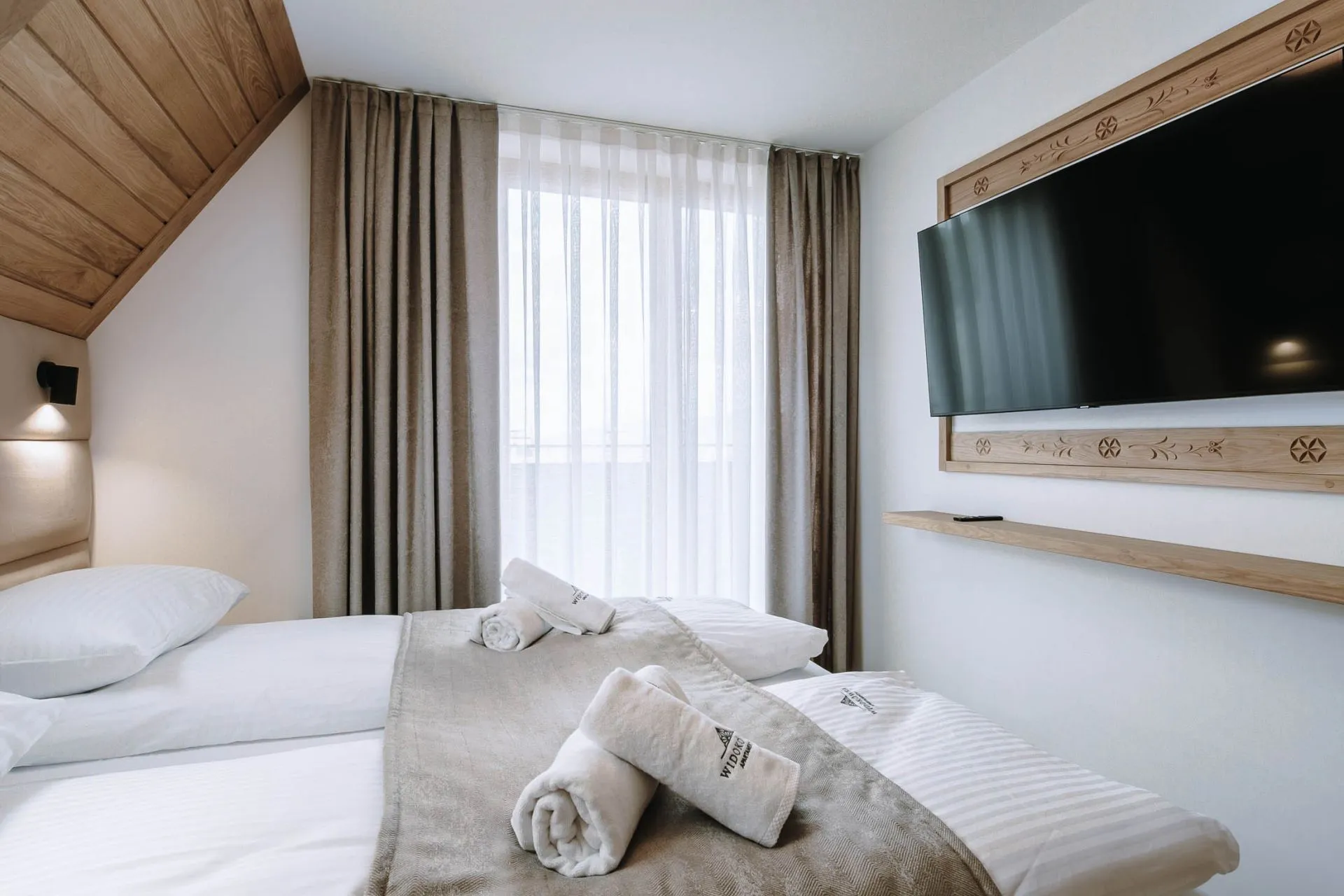 Apartamenty o wysokim standardzie w Kościelisku z przepięknym widokiem na Panoramę Tatr oraz SAUNĄ dostępną dla gości obiektu bezpłatnie. W budynku znajduje się 8 apartamentów, 4 apartamenty 6 osobowe oraz 4 apartamenty 4 osobowe, plus pralnia z której goście mogą korzystać bezpłatnie podczas swojego pobytu.