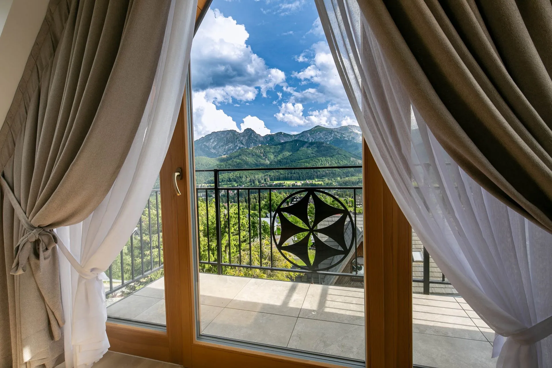 Struktura apartamentu: otwarty salon z sypialnią i aneksem kuchennym, balkon z widokiem na całą Panoramę Tatr Zakopanego oraz Kościeliska