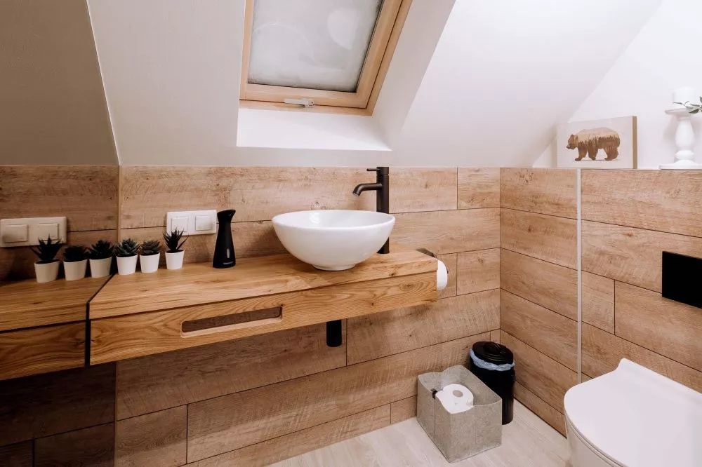 Łazienka: kabina prysznicowa, toaleta, umywalka, pralka, suszarka do włosów, duże lustro