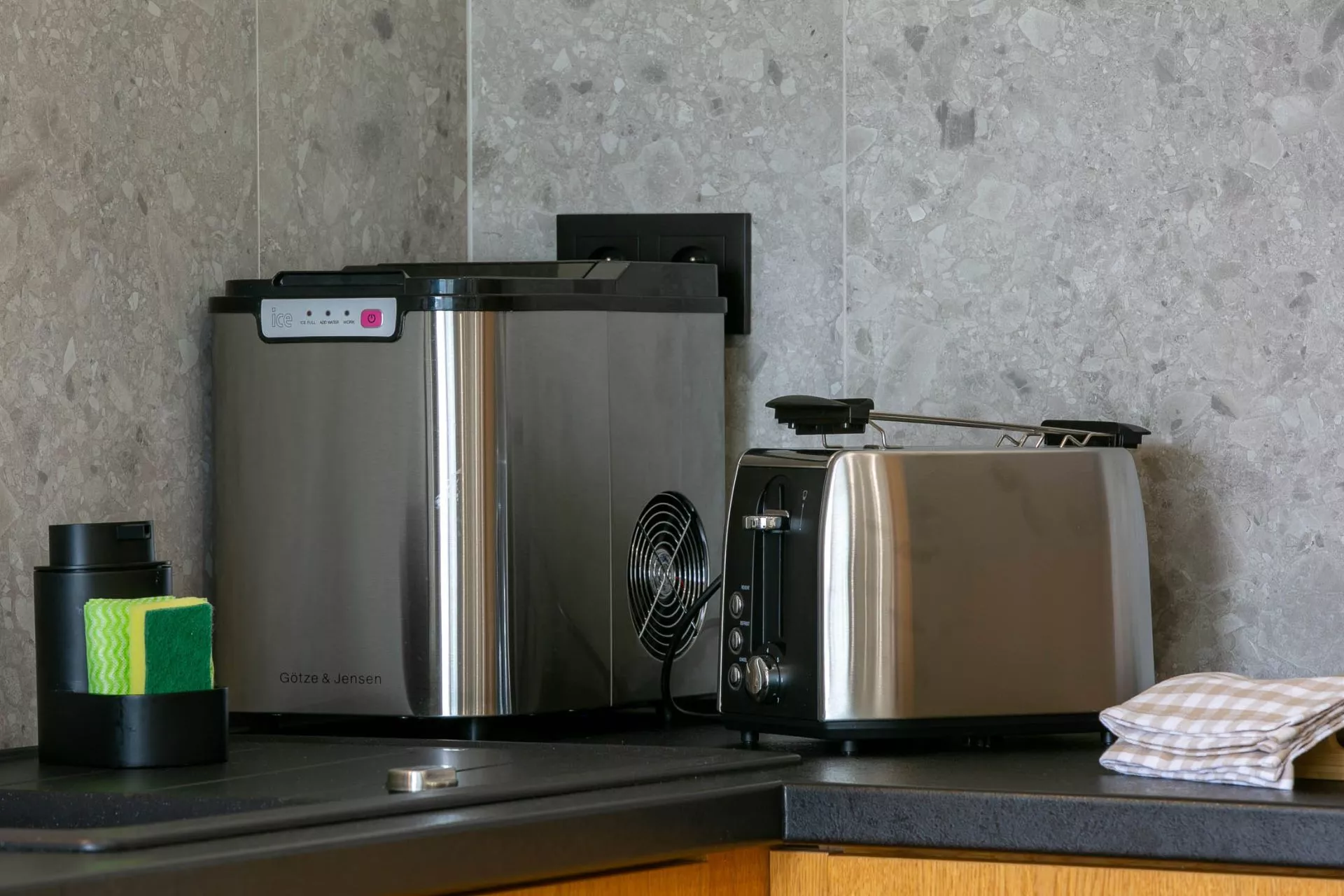 Aneks kuchenny: lodówka, zmywarka, płyta grzewcza 2 palnikowa, czajnik elektryczny, ekspres do kawy przelewowy, kostkarka do lodu, opiekacz, komplet naczyń, garnków, sztućców, zastawa szklana.