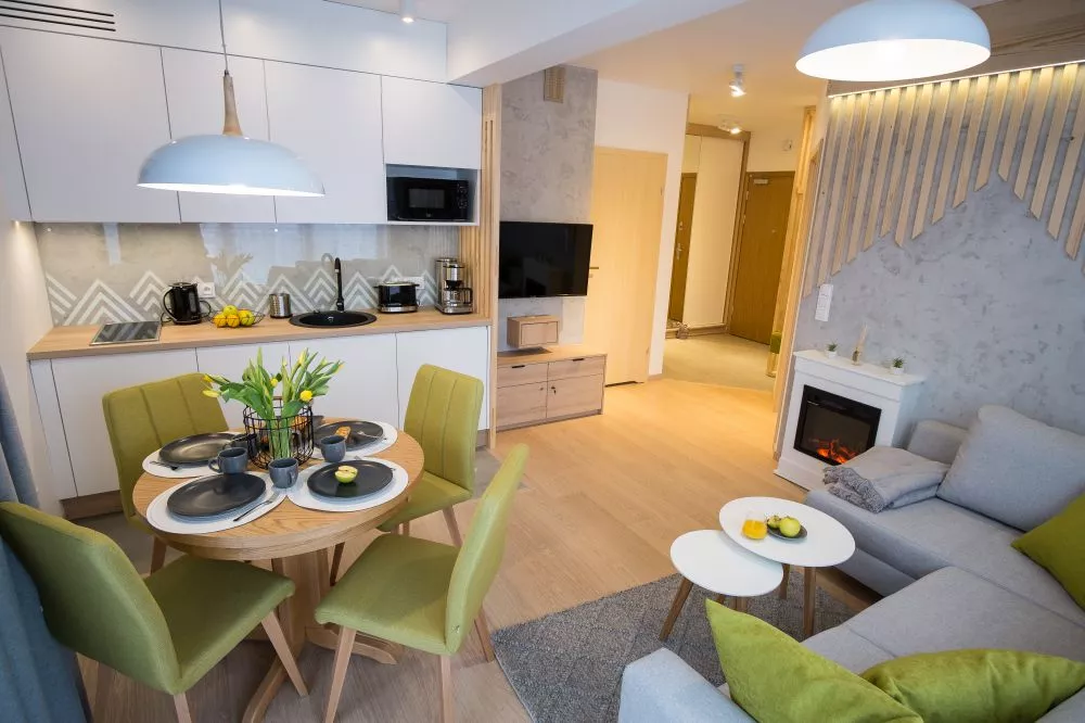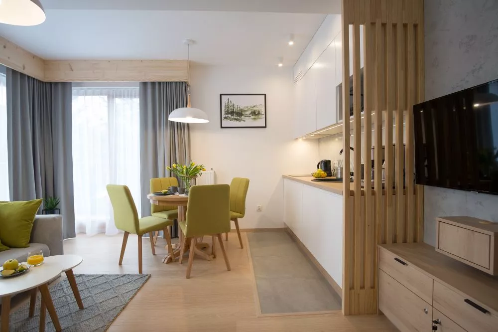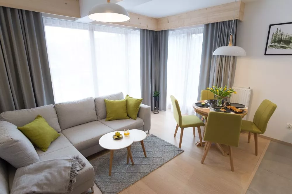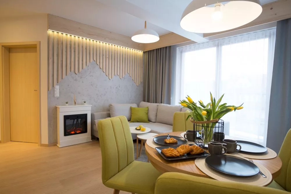 Przytulny apartament dla 4 osób w ścisłym centrum Zakopanego, zlokalizowany pomiędzy Krupówkami (5 minut spacerkiem), a kompleksem skoczni narciarskich Wielka Krokiew. Mieści się w budynku nowoczesnego apartamentowca z windą.
