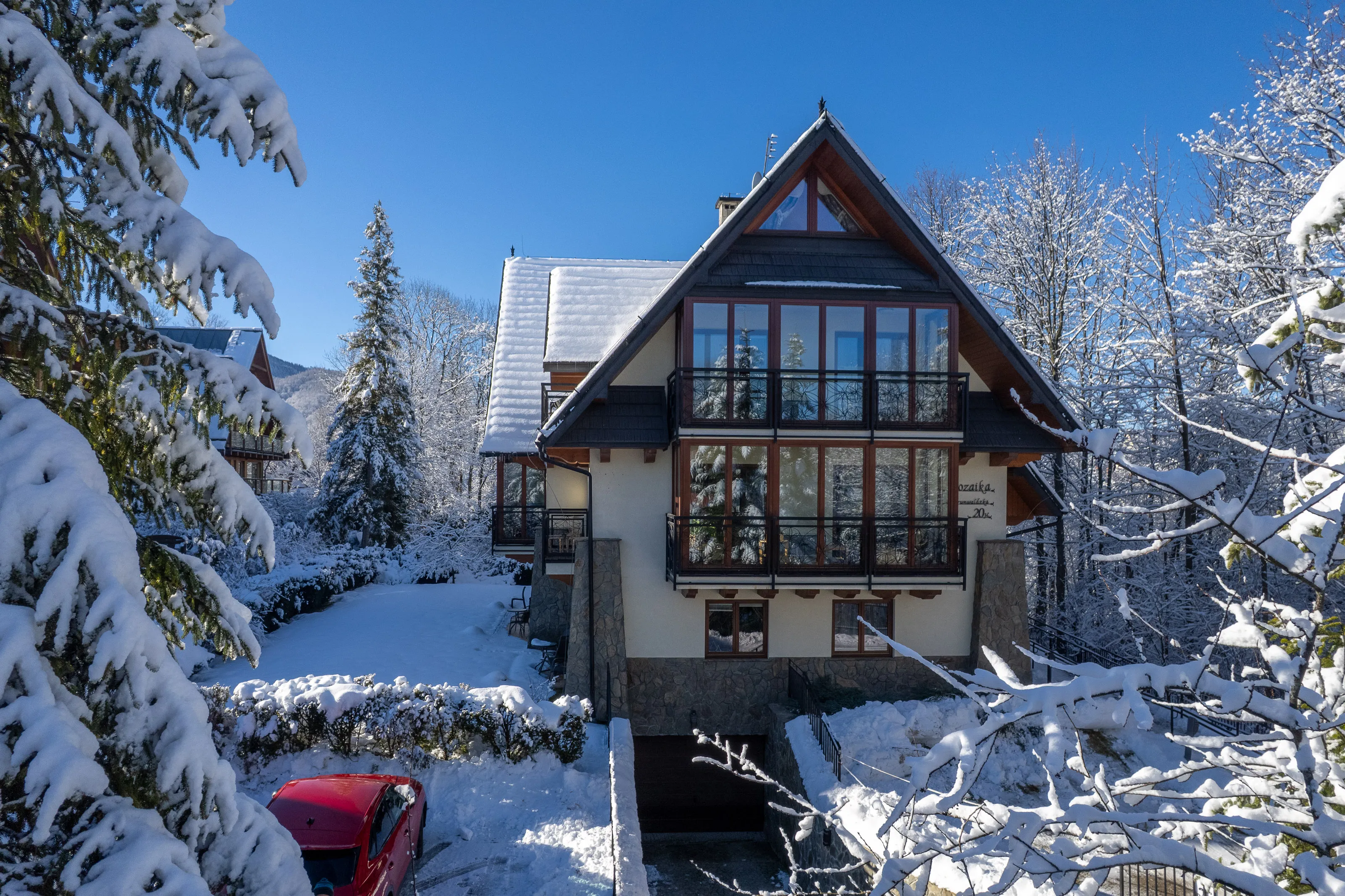 Kameralny i stylowy budynek zlokalizowany w odległości ok. 5 minut drogi od ulicy Krupówki. Cicha i spokojna okolica w ścisłym centrum Zakopanego. Bliskość szlaków turystycznych, garaż podziemny i WiFi.