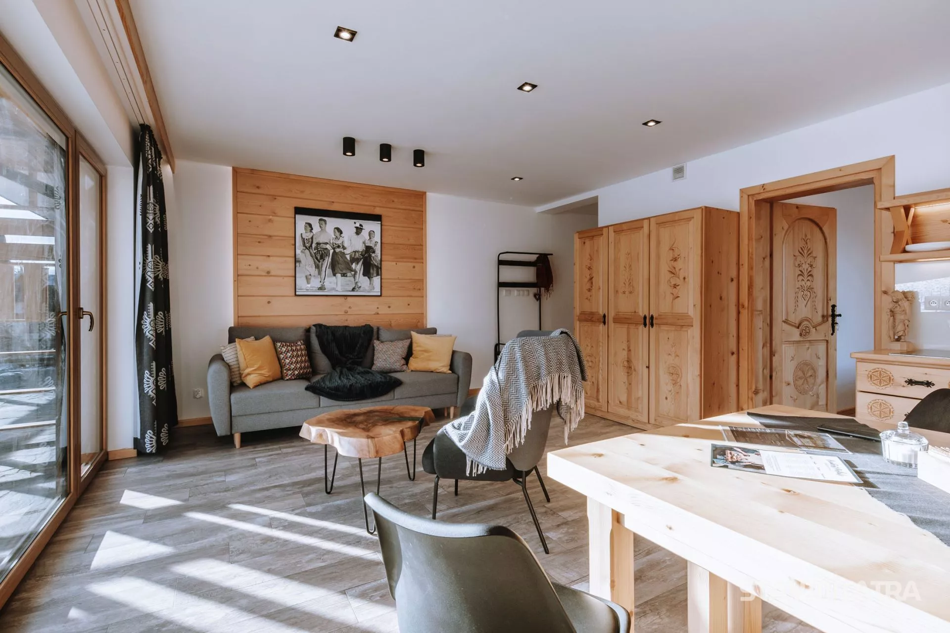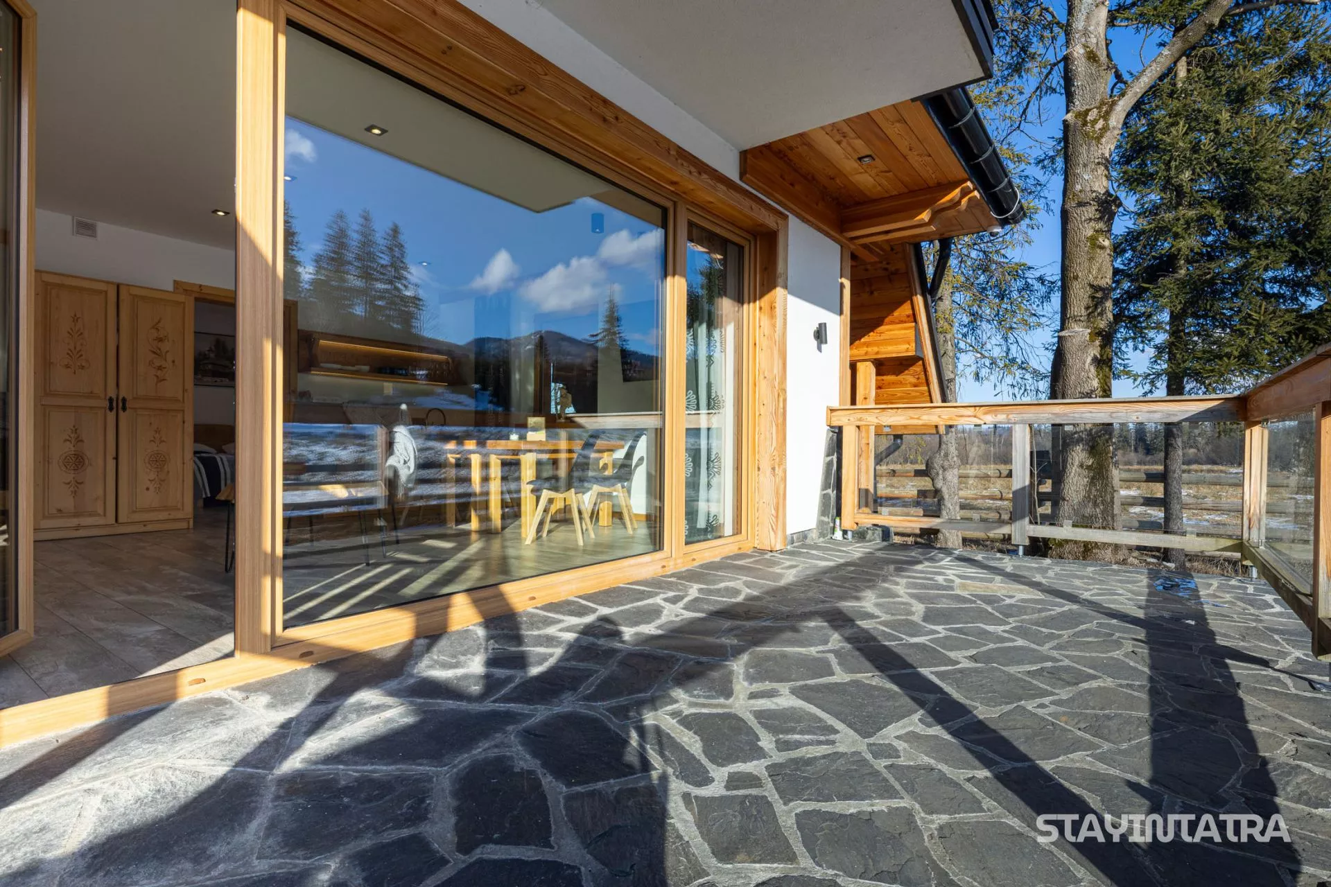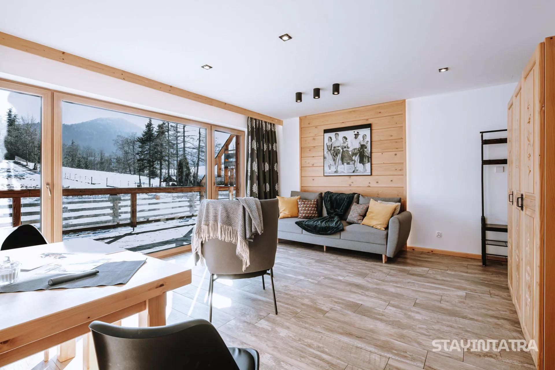 Struktura apartamentu: przedpokój, salon z aneksem kuchennym, osobna sypialnia (łóżko małżeńskie), łazienka, duży taras z pięknym widokiem na góry / Apartament zlokalizowany na parterze.