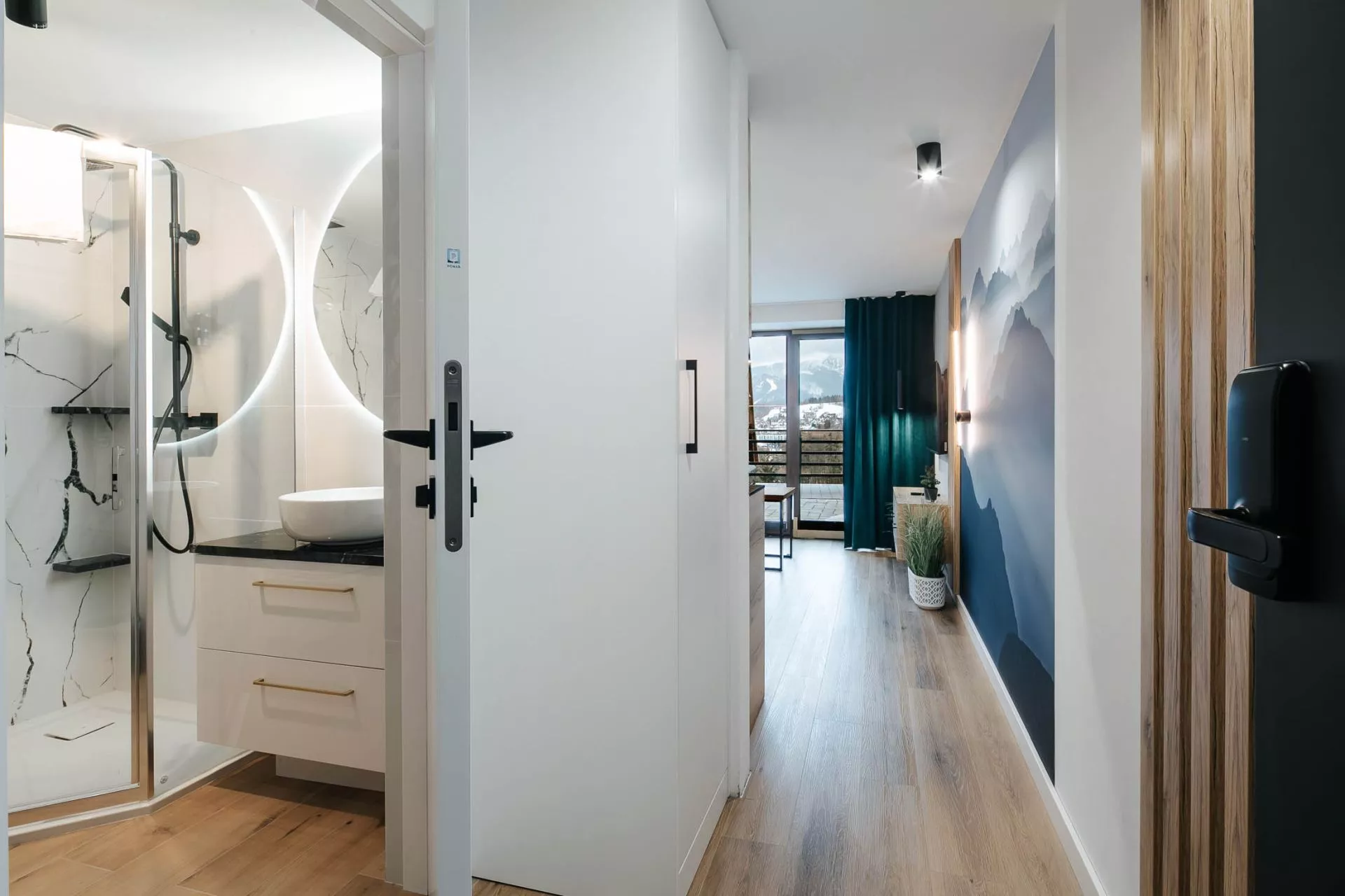W apartamentach zainstalowane są zamki elektroniczne na kod.