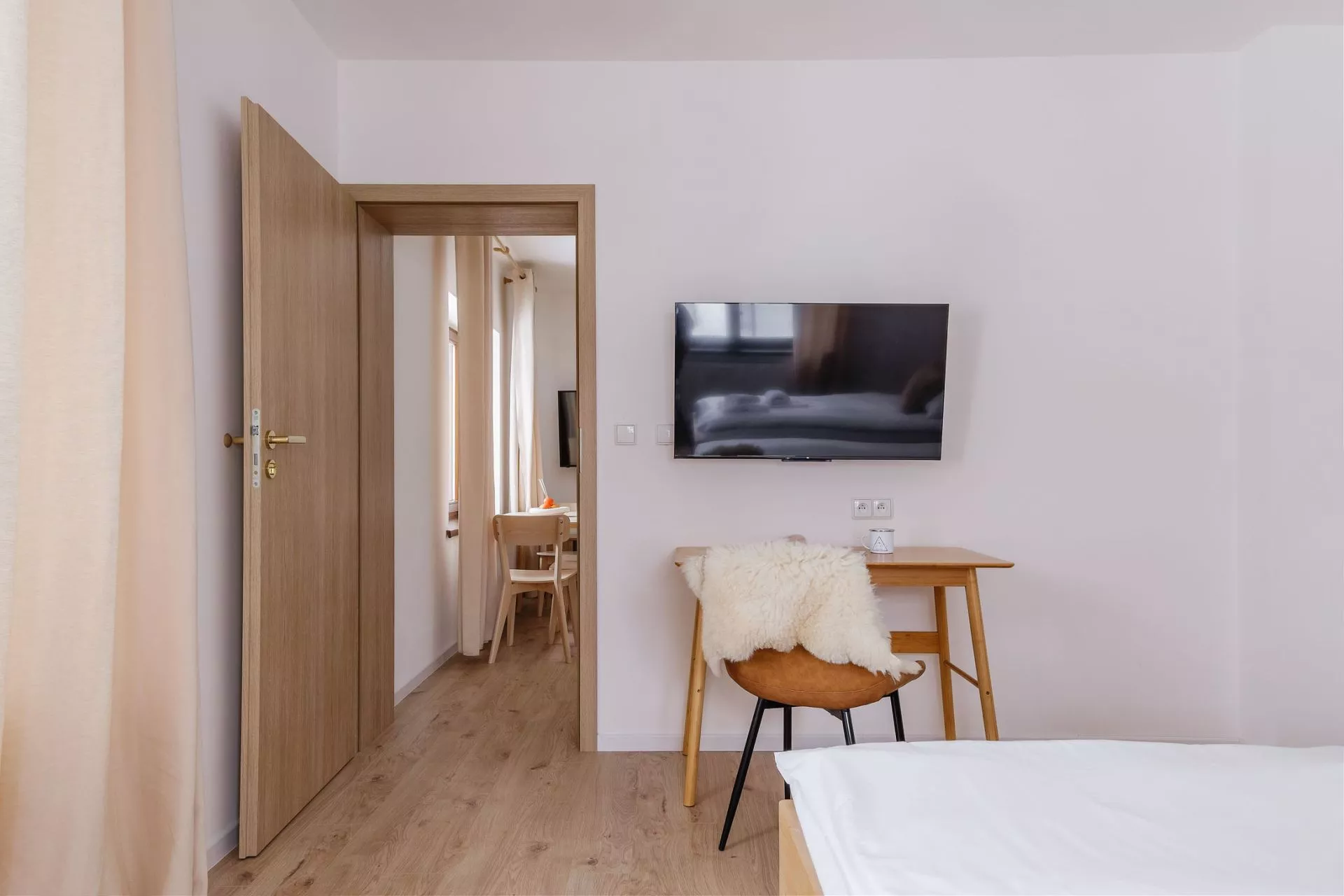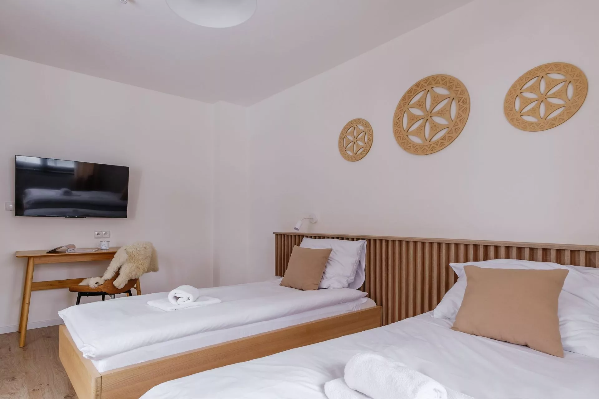 Sypialnia 1: 2 pojedyncze łóżka, TV'42, biurko, krzesło, regał
