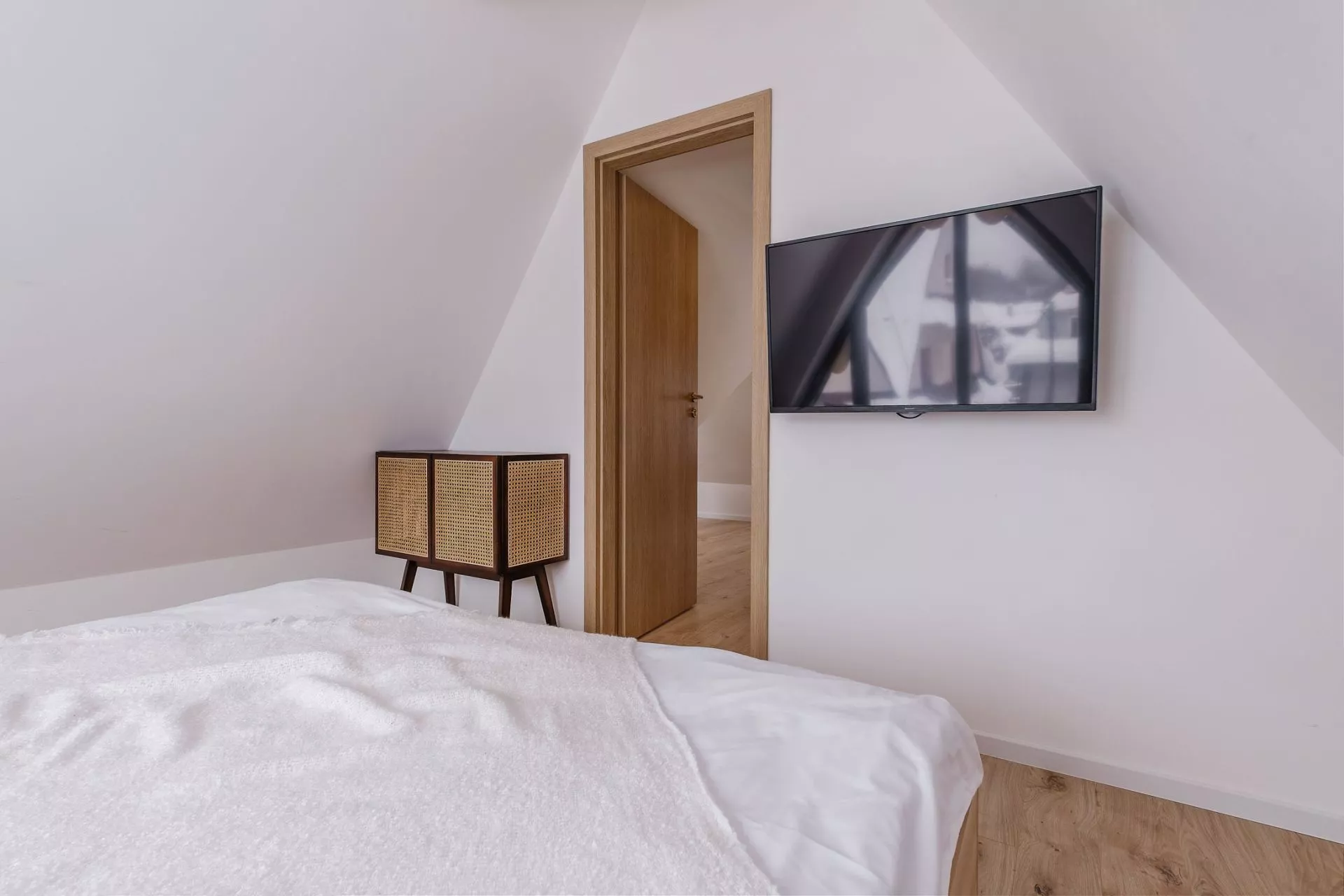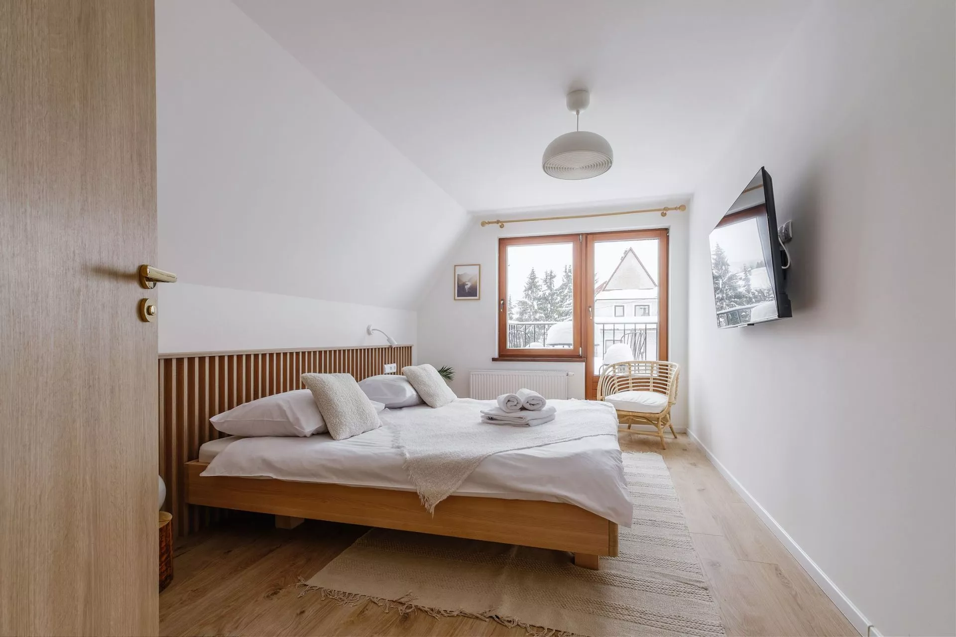 Sypialnia 2: podwójne łóżko małżeńskie, TV'42, regał, wyjście na balkon