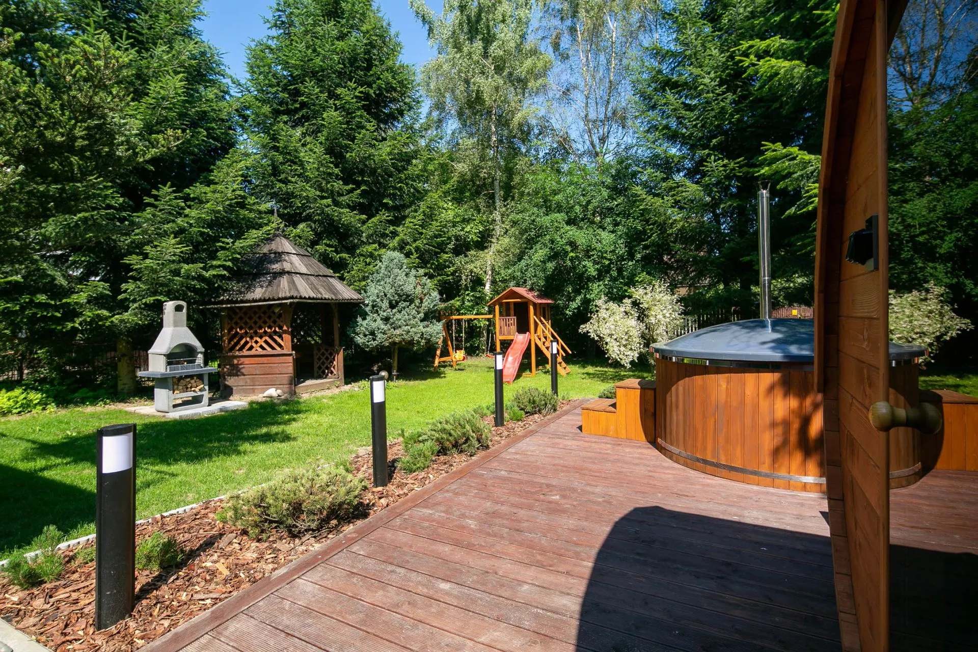 W obiekcie znajduje się strefa SPA z zewnętrznym jacuzzi i sauną i placem zabaw dla dzieci!