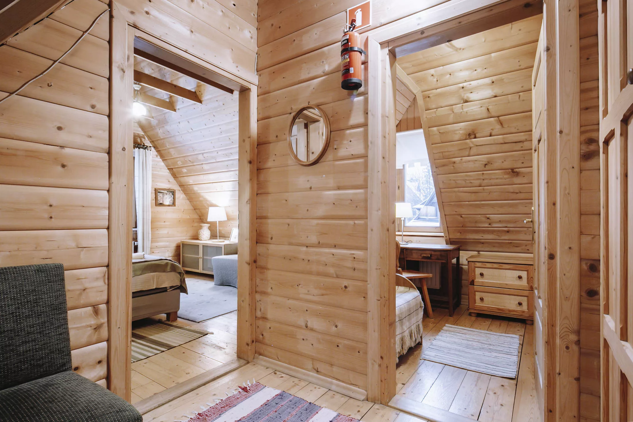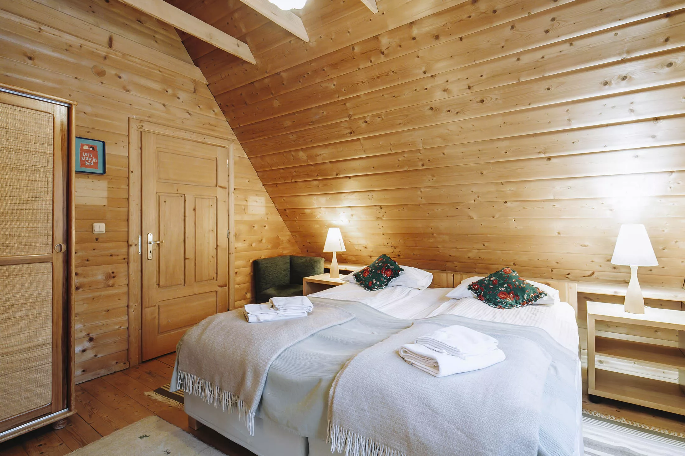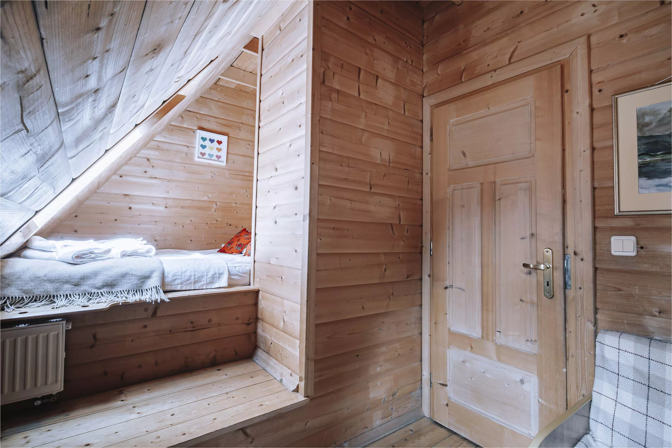 - Sypialnia górna kondygnacja: łóżko dla 2 osób 135 cm x 180 cm,