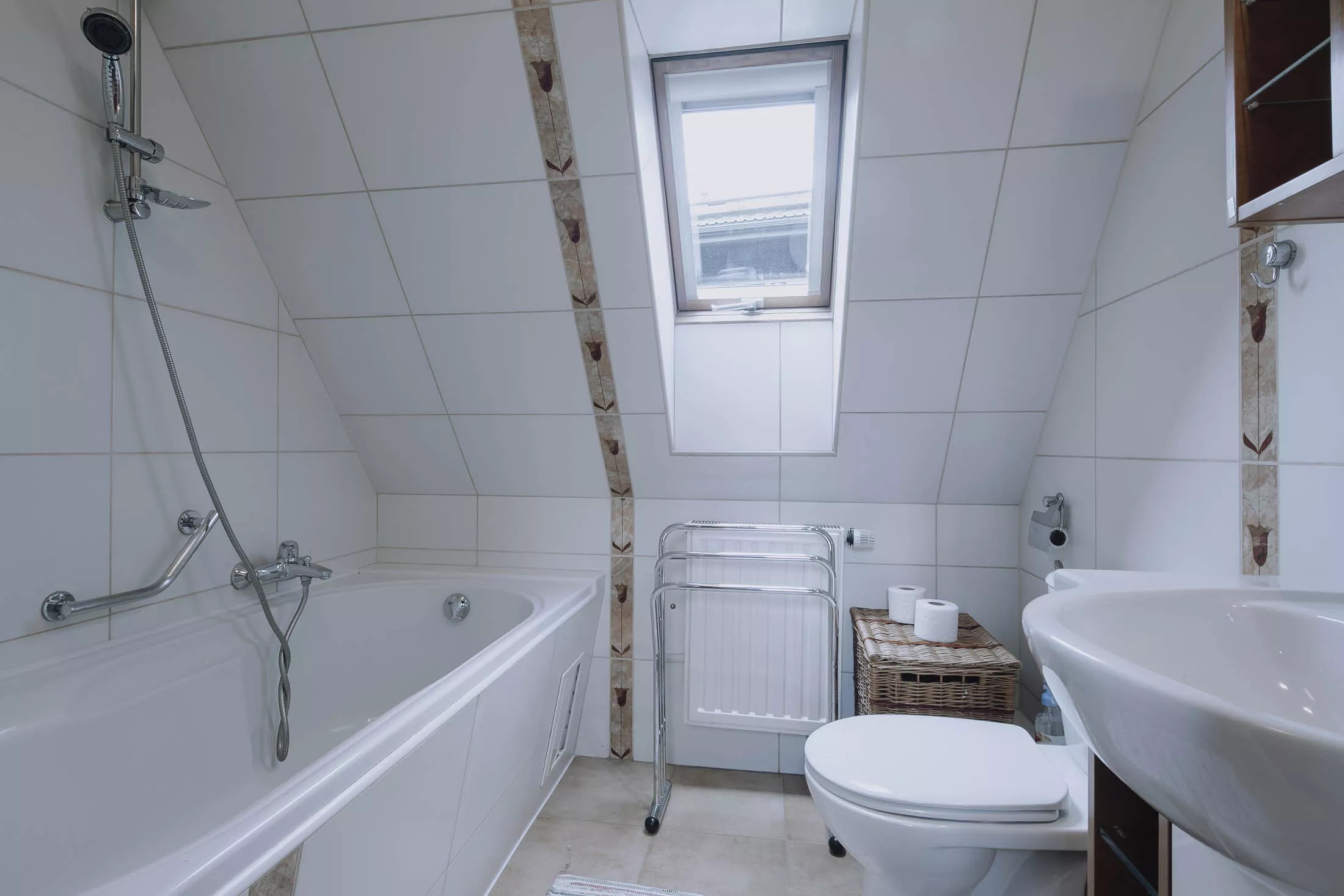 Łazienka: w jednej wanna, w drugiej kabina prysznicowa oraz dodatkowa osobna toaleta