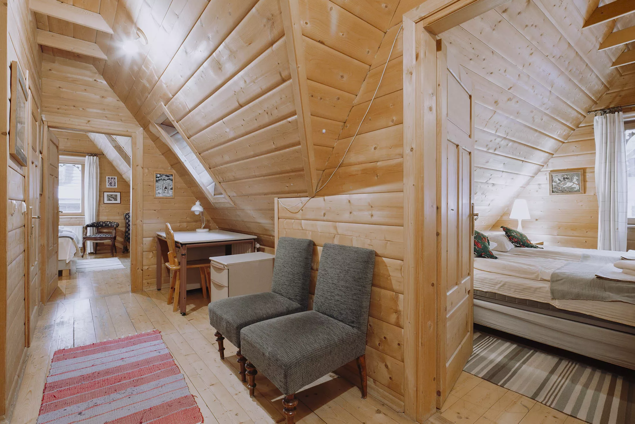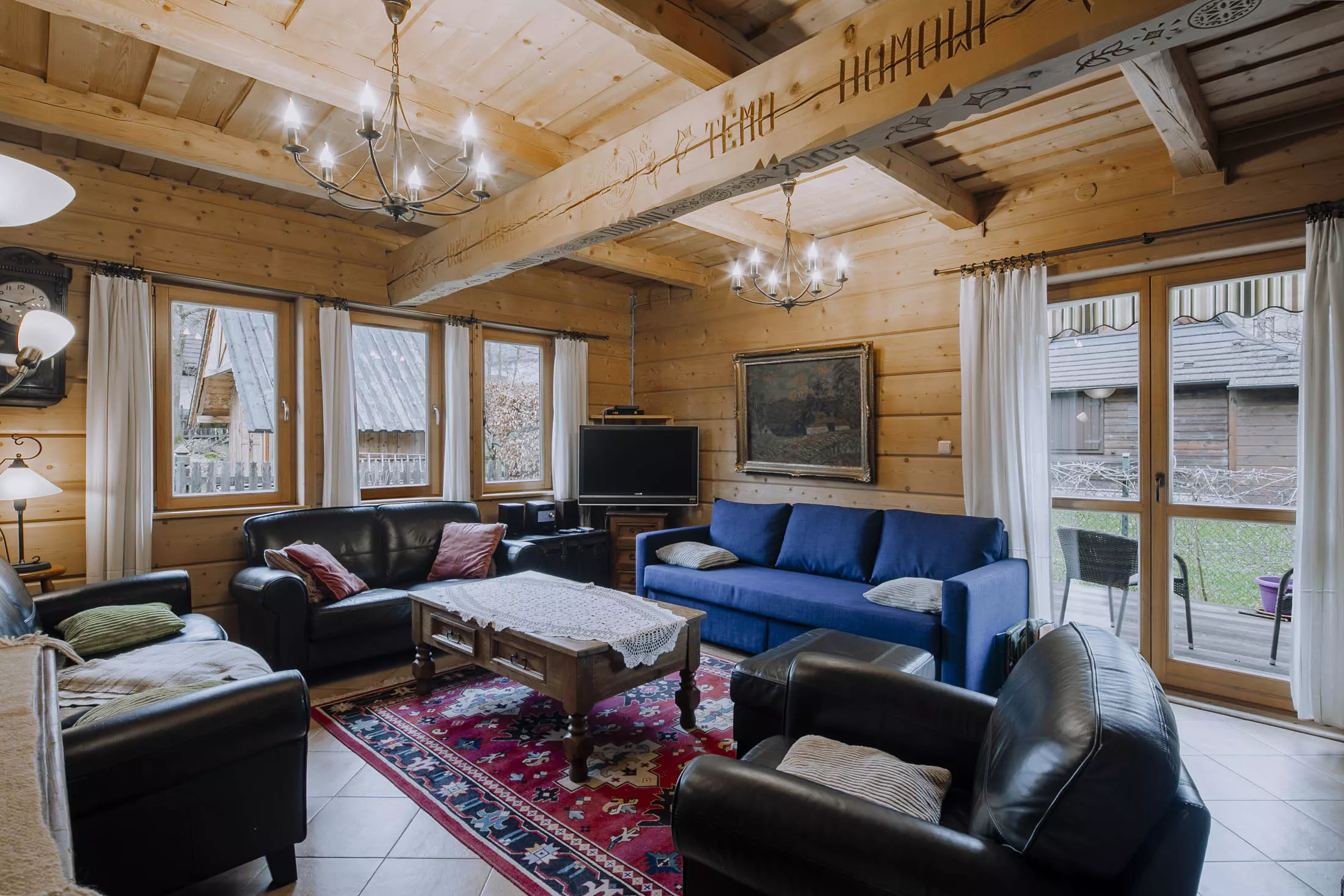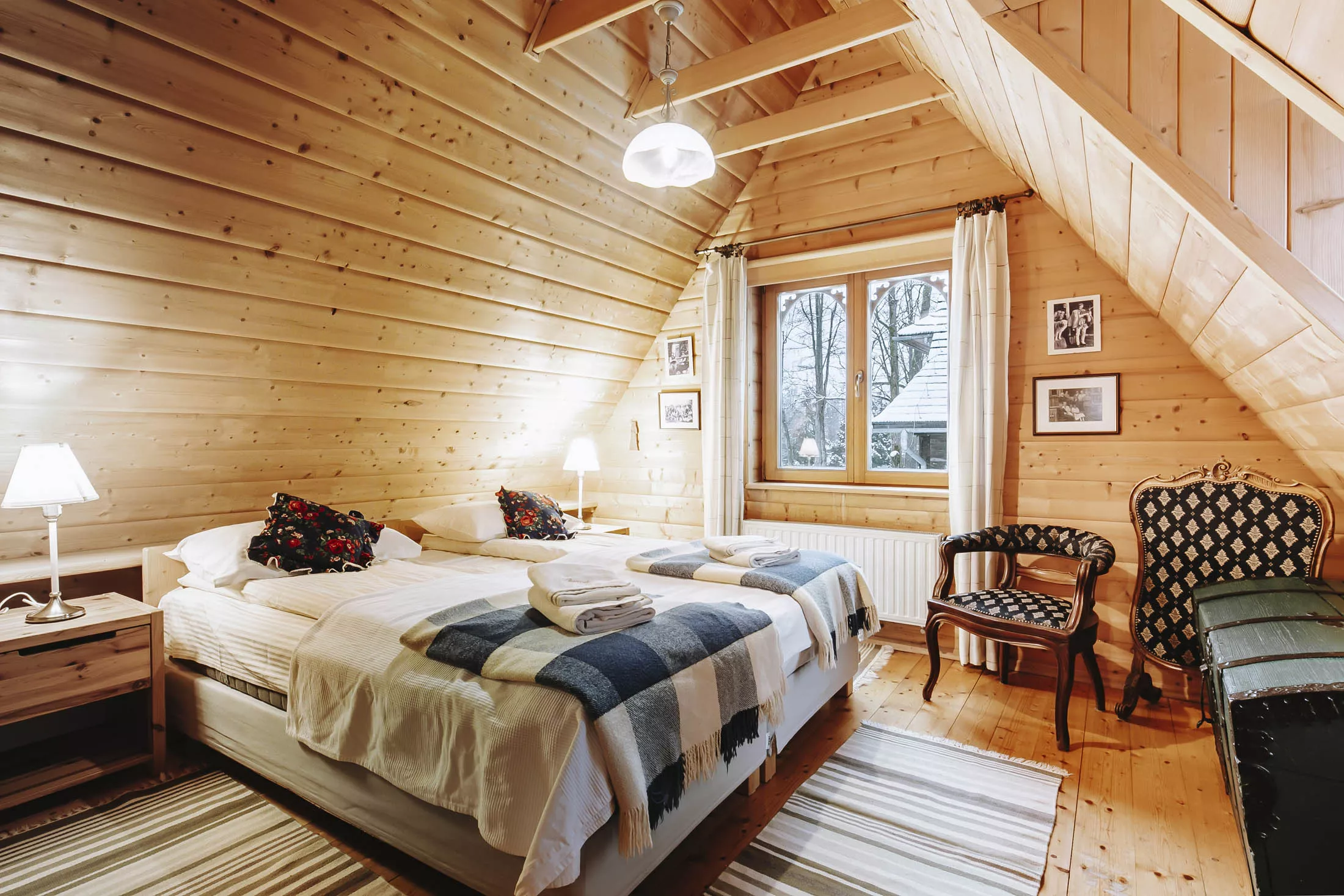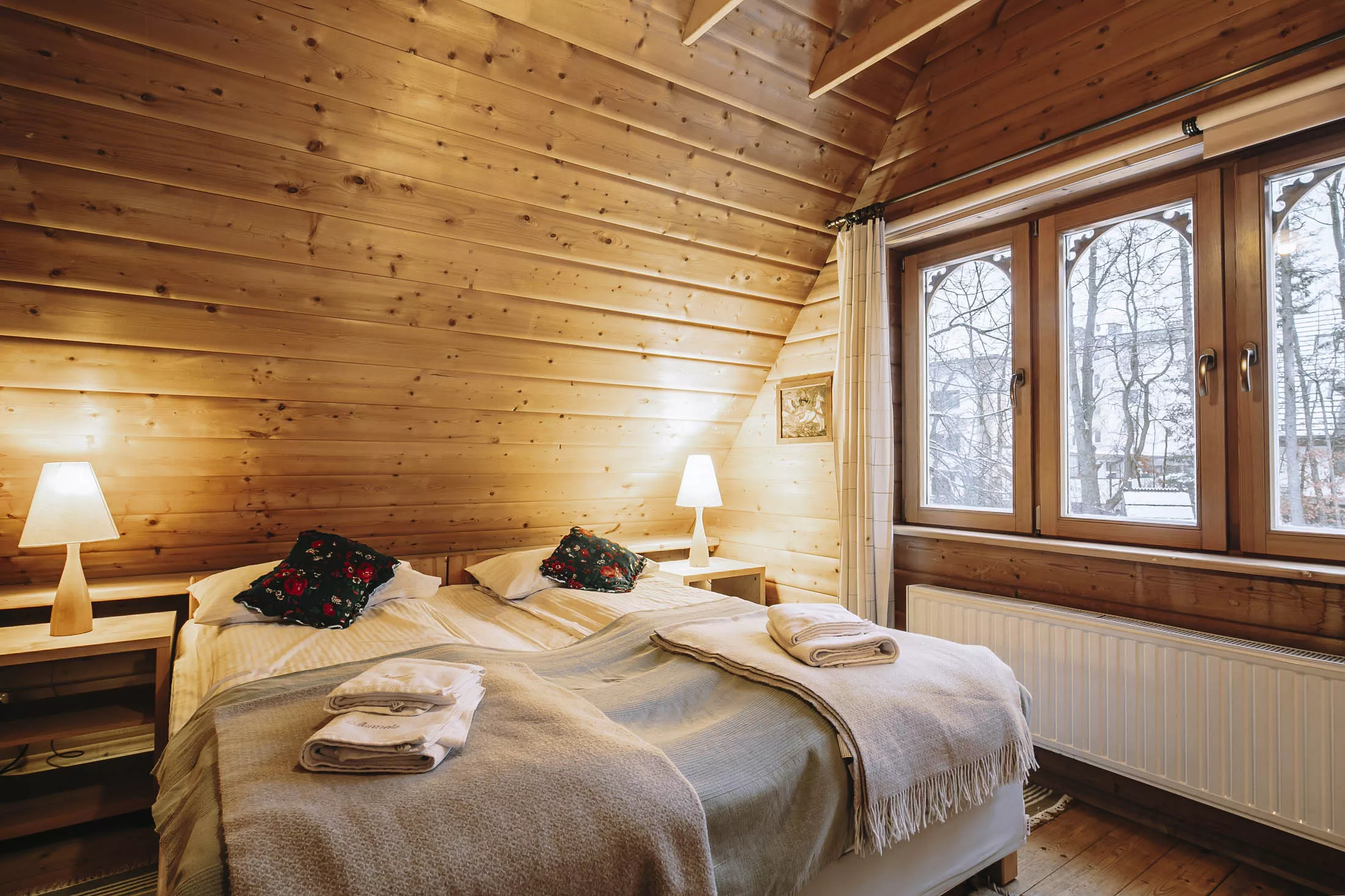 Samodzielny, regionalny domek w ścisłym centrum Zakopanego w odległości ok. 5 minut drogi od Krupówek. Przeznaczony dla maksymalnie 8 osób. Posiada trzy zagospodarowane kondygnacje. W domku znajdują się w sumie 4 sypialnie - trzy na piętrze + jedna w suterenie domku. Na parterze znajduje się duży salon z kominkiem i ogrzewaniem podłogowym, a także w pełni wyposażona kuchnia. Z salonu znajduje się bezpośrednie wyjście na taras i do ogrodu. Na tarasie znajduje się komplet mebli ogrodowych, a w ogrodzie kamienny grill. W suterenie budynku jest sauna, z której korzystanie wliczone jest w cenę wynajmu domku. W domku są 2 łazienki i jedna toaleta. Na terenie posesji znajdują się 3 miejsca parkingowe z bramą na pilota. W domku dostępny jest bezprzewodowy internet, a także telewizja cyfrowa Orange.