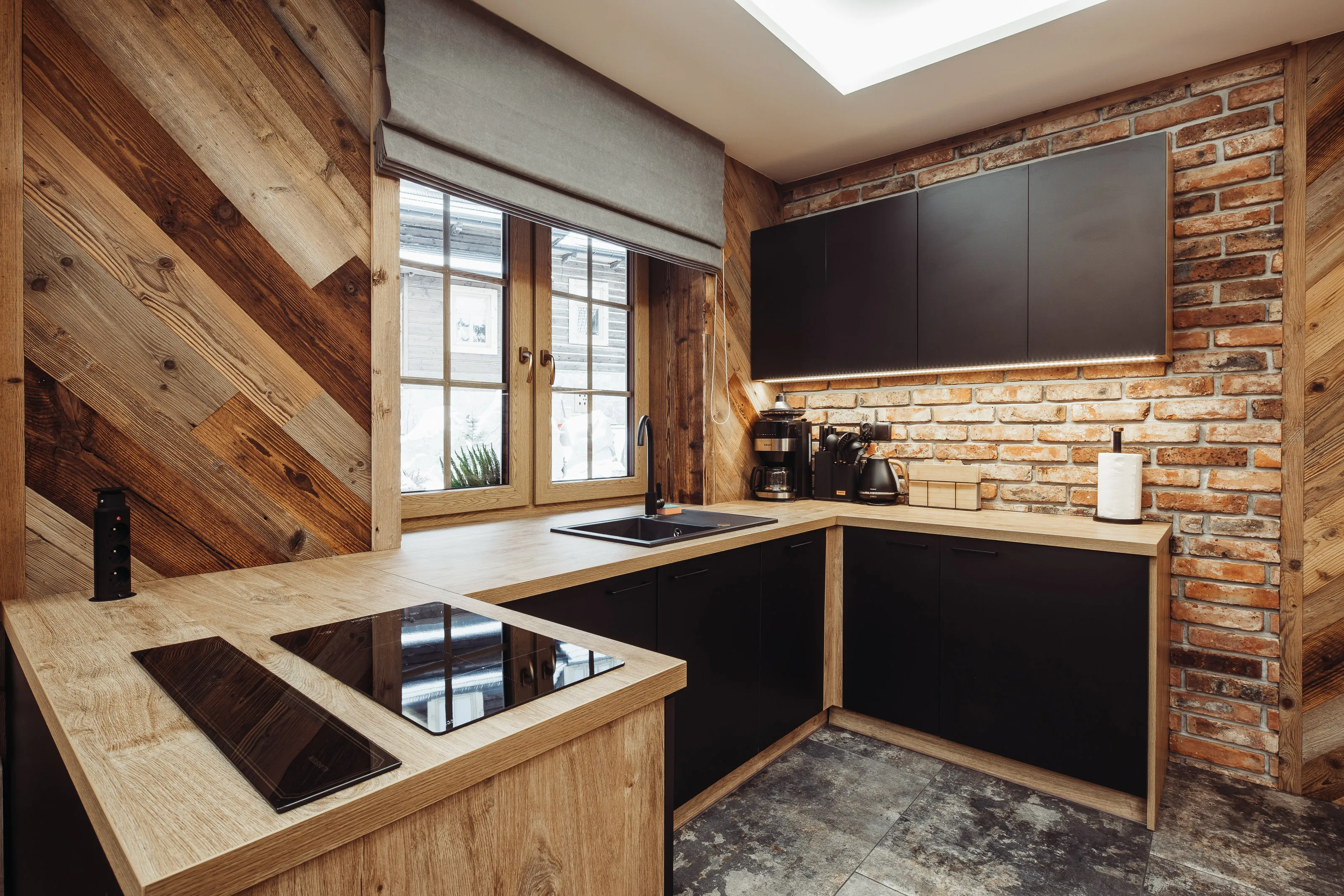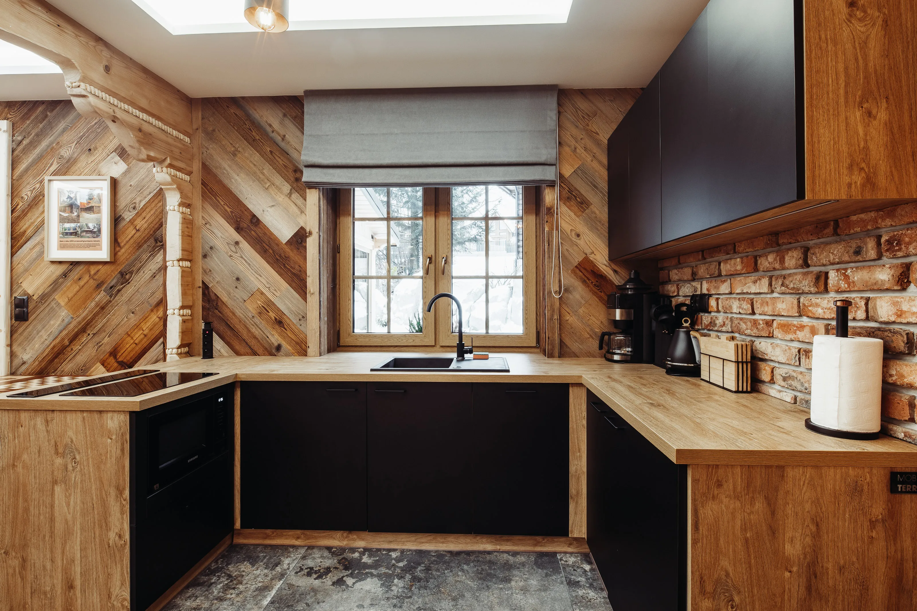 Aneks kuchenny: lodówka, kuchenka mikrofalowa, czajnik elektryczny, ekspres do kawy, komplet naczyń i sztućców, garnki do gotowania, zastawa szklana. W aneksie kuchennym znajduje się wyspa kuchenna z płytą indukcyjną do gotowania wysuwany okap.