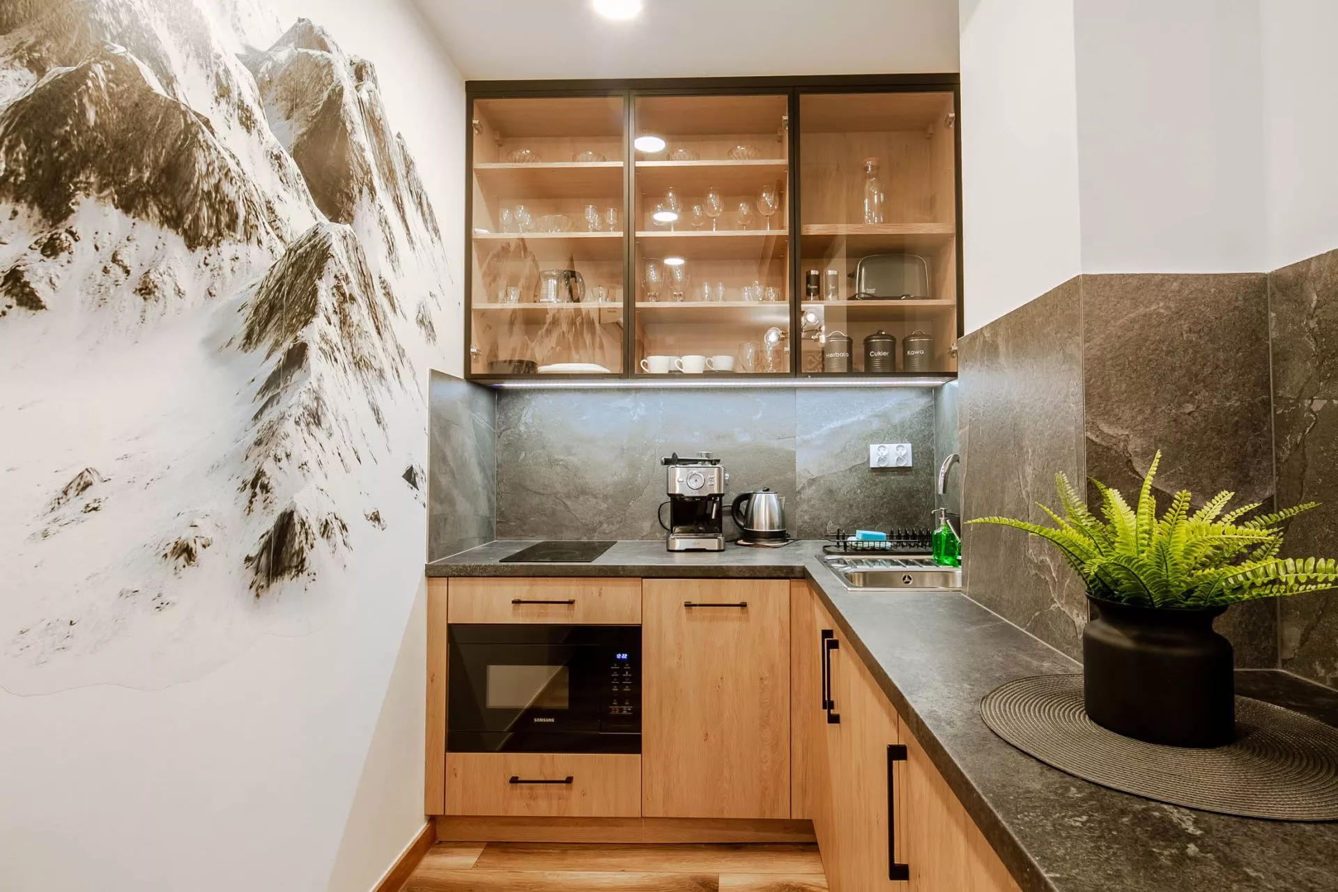 Apartamenty Księżycowe SPA - komfortowy kompleks apartamentów zlokalizowany w cichej, spokojnej i wyjątkowo widokowej dzielnicy Zakopanego - Oberconiówka. Z okien apartamentów rozpościera się przepiękny widok na Panoramę Tatr, przed budynkiem znajduje się bezpłatny parking samochodowy, teren wokół jest ogrodzony, a wjazd na posesję zamykany szlabanem na pilota.