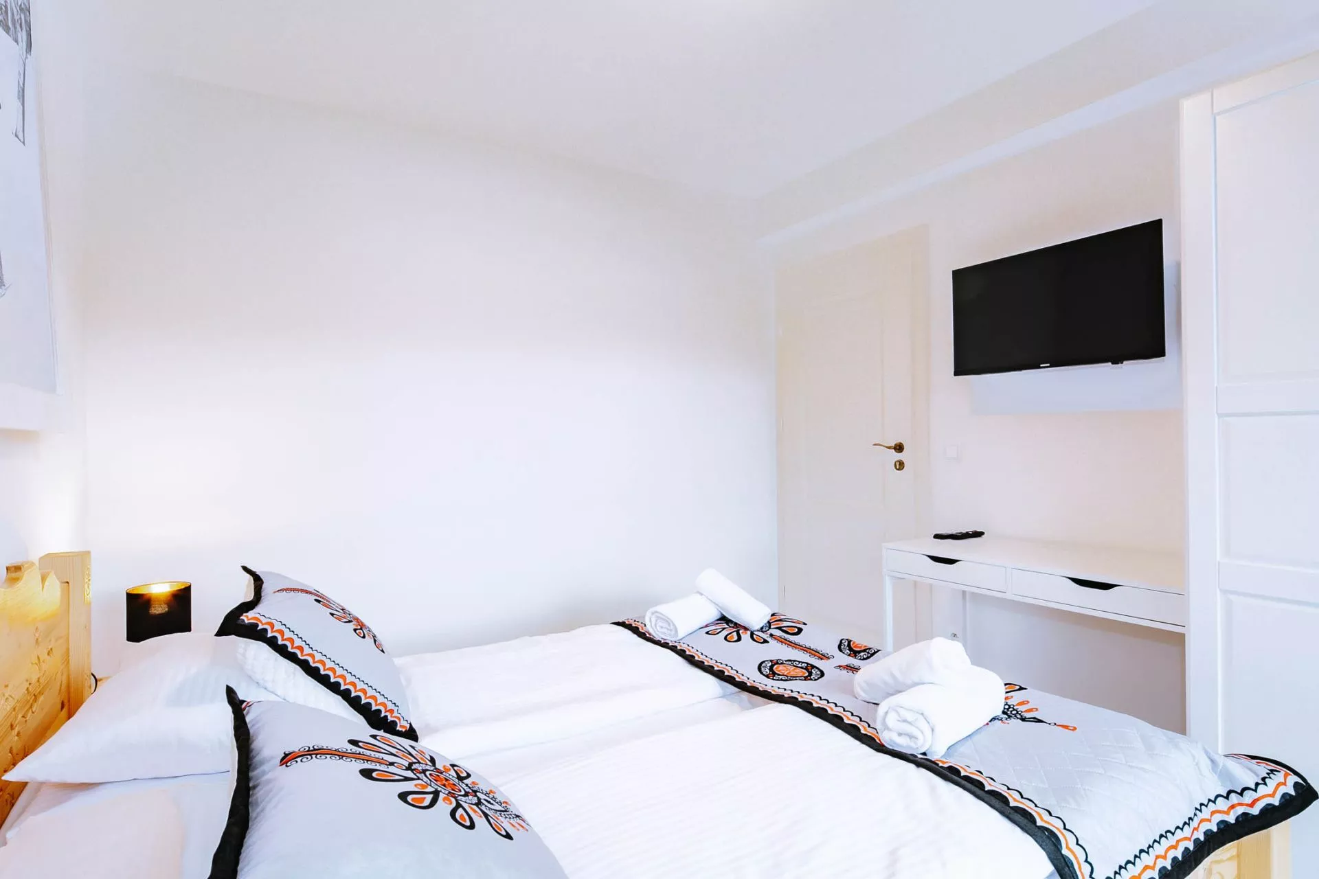 Sypialnia 1: łóżko małżeńskie, biurko, TV'37, szafa, balkon