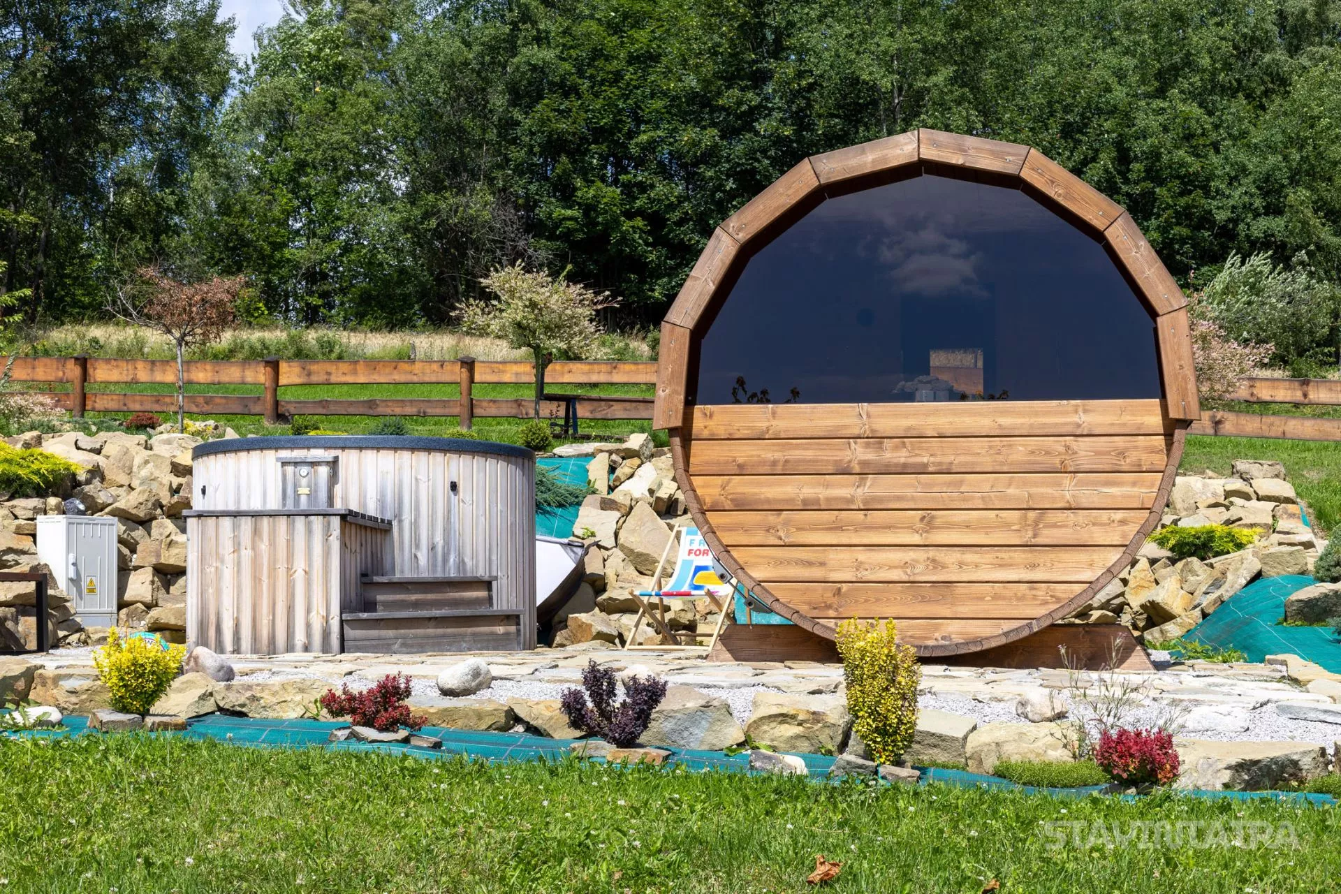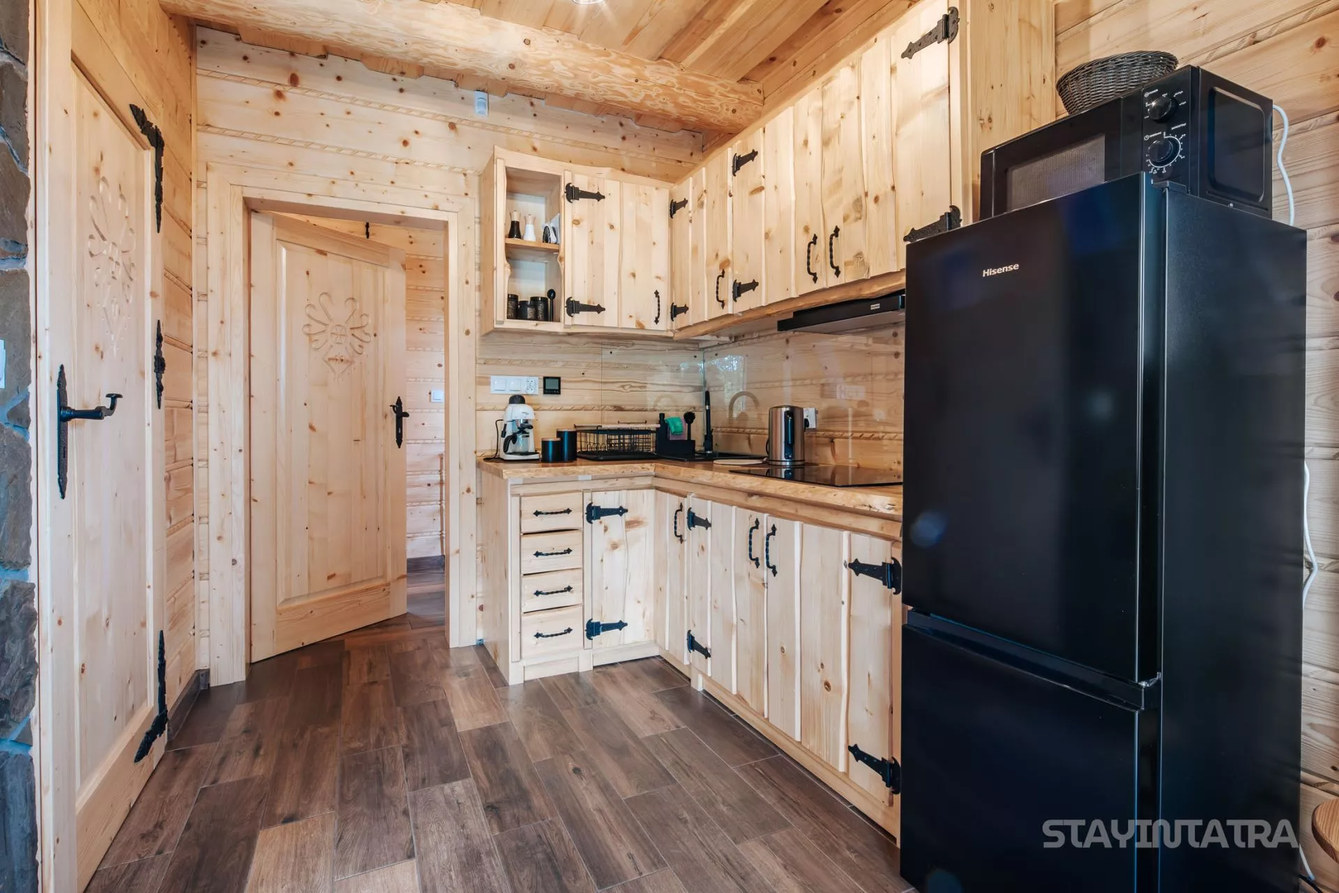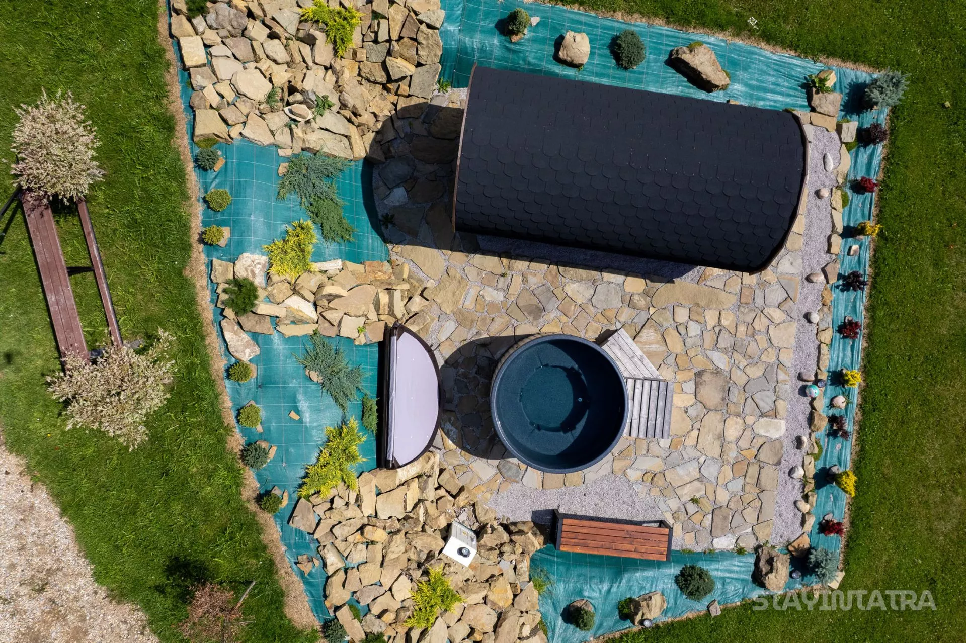 2 poziomowy domek dla 6-7 osób z dużym tarasem, dostępem do zewnętrznej strefy SPA z sauną i balią wodną. Domek znajduje się w wyjątkowym kompleksie wypoczynkowym złożonym z dwóch samodzielnych domków (każdy dla 6-7 osób) i dedykowanej dla gości strefy wypoczynkowej w ramach której znajdują się: