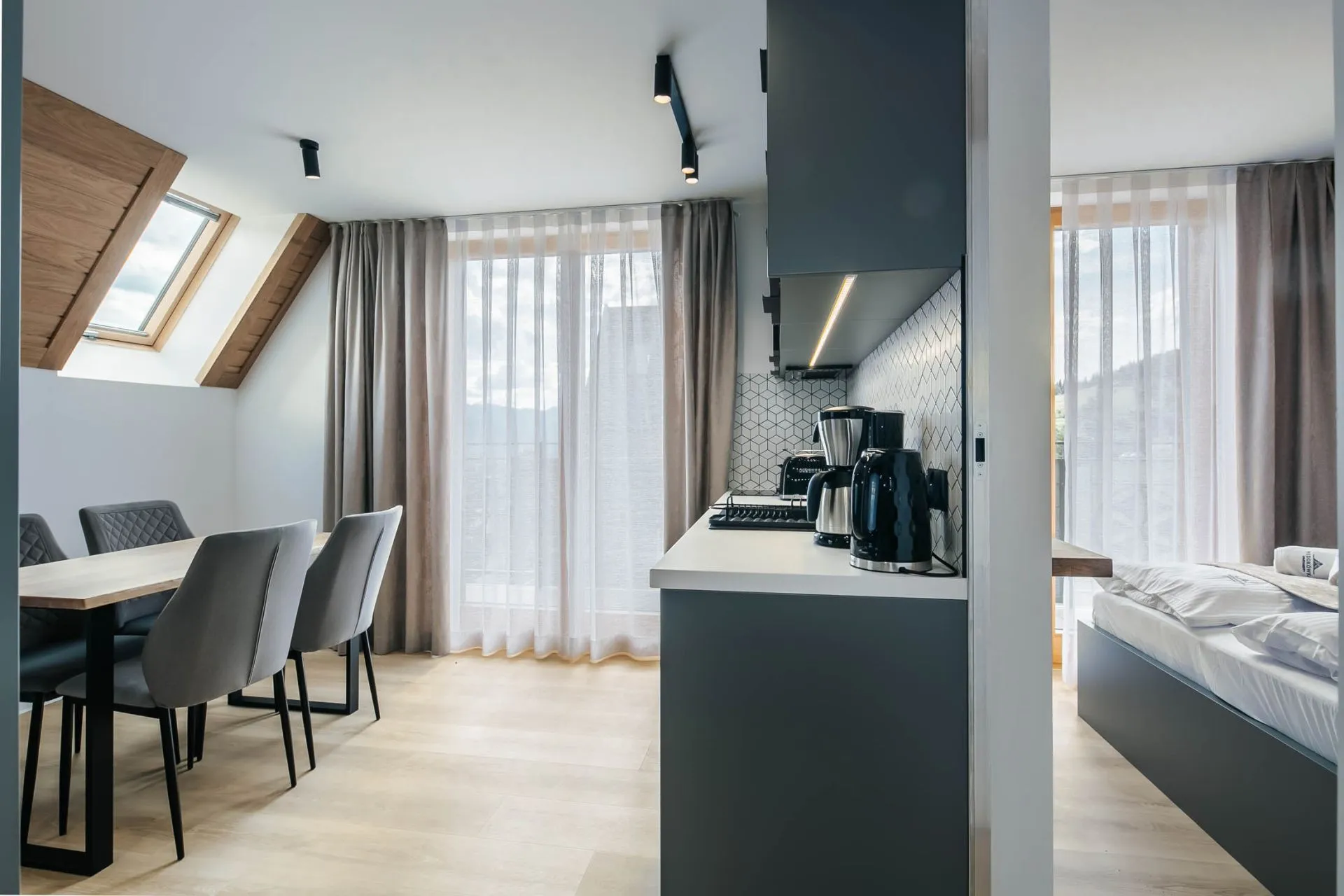 Apartamenty o wysokim standardzie w Kościelisku z przepięknym widokiem na Panoramę Tatr oraz SAUNĄ dostępną dla gości obiektu bezpłatnie. W budynku znajduje się 8 apartamentów, 4 apartamenty 6 osobowe oraz 4 apartamenty 4 osobowe, plus pralnia z której goście mogą korzystać bezpłatnie podczas swojego pobytu.