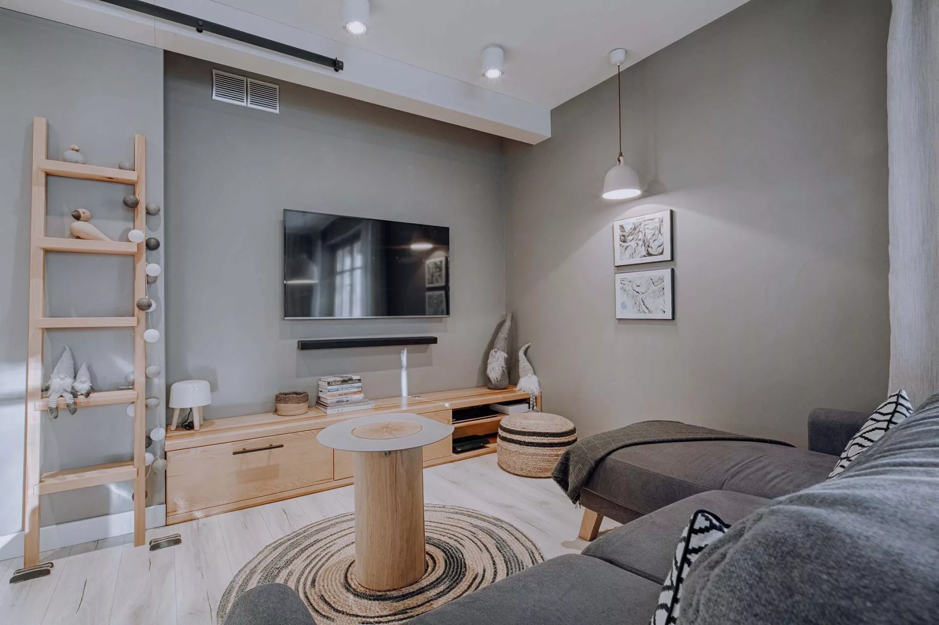 Salon: rozkładana 2-osobowa sofa, LCD’50 konsola PlayStation3 (w pakiecie z grami), SmartTV, stolik kawowy