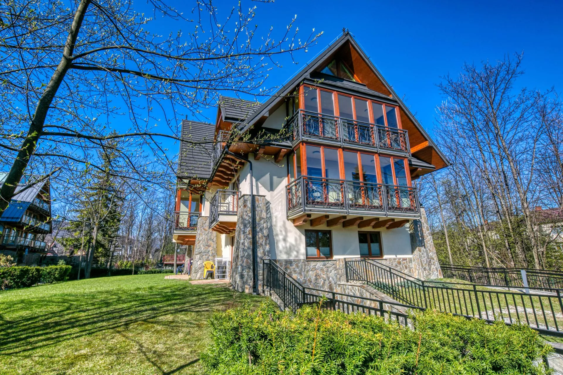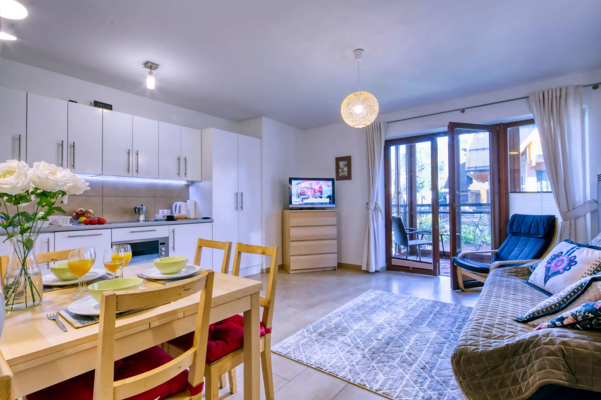 Apartament składa się z: salonu z aneksem kuchennym, sypialni we wnęce, łazienki i przeszklonego balkonu - ogrody zimowego. Teren wokół apartamentowca jest ogrodzony, a okolica bardzo bezpieczna i cicha. W odległości 300m znajduje się wejście do Doliny Białego - miejsca z którego rozpoczyna się szereg szlaków tatrzańskich.