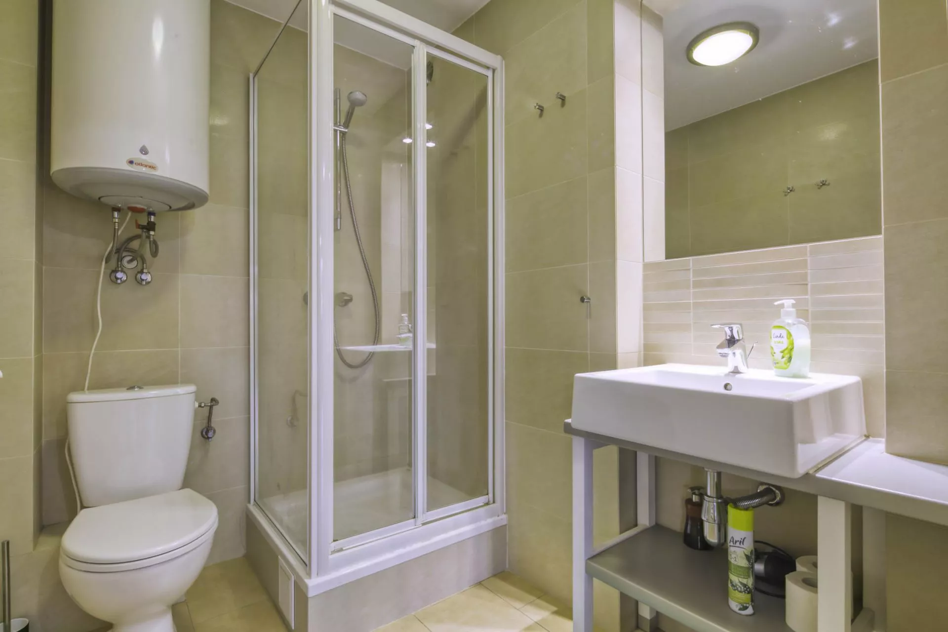 Sypialnia: łóżko małżeńskie Łazienka: kabina prysznicowa, toaleta, umywalka, ręcznikowiec