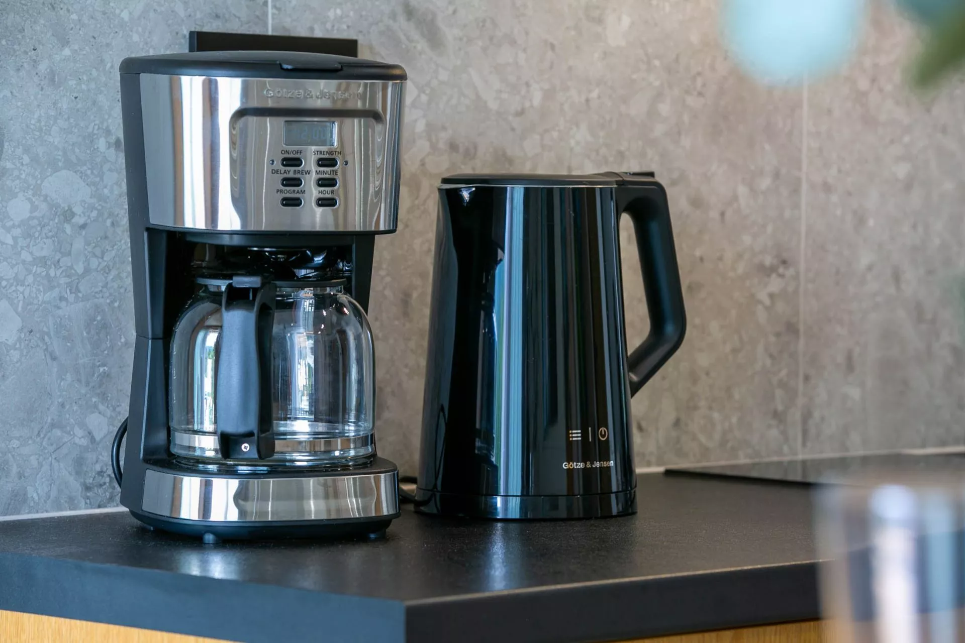 Aneks kuchenny: lodówka, zmywarka, płyta grzewcza 2 palnikowa, czajnik elektryczny, ekspres do kawy przelewowy, kostkarka do lodu, opiekacz, komplet naczyń, garnków, sztućców, zastawa szklana.