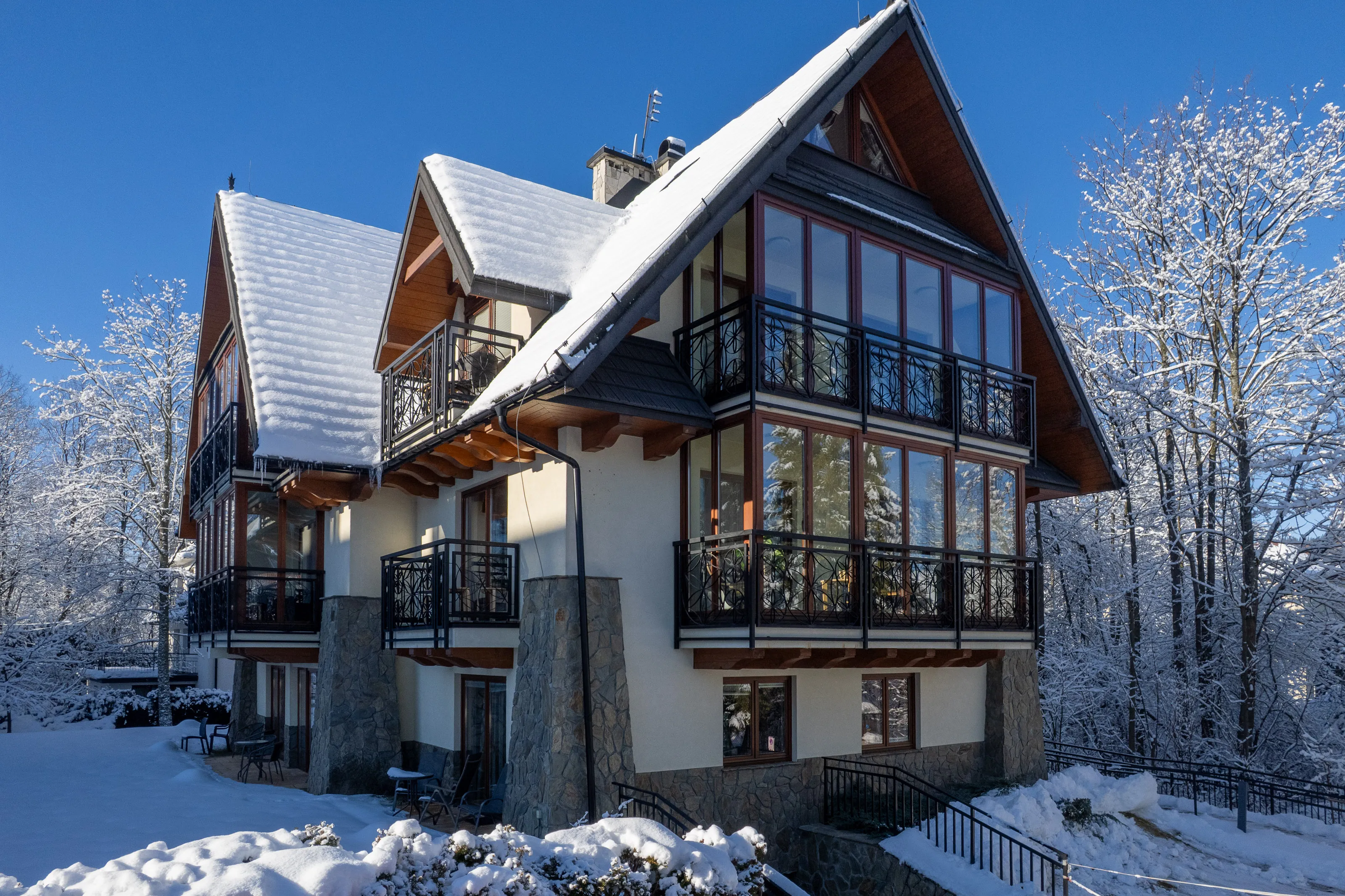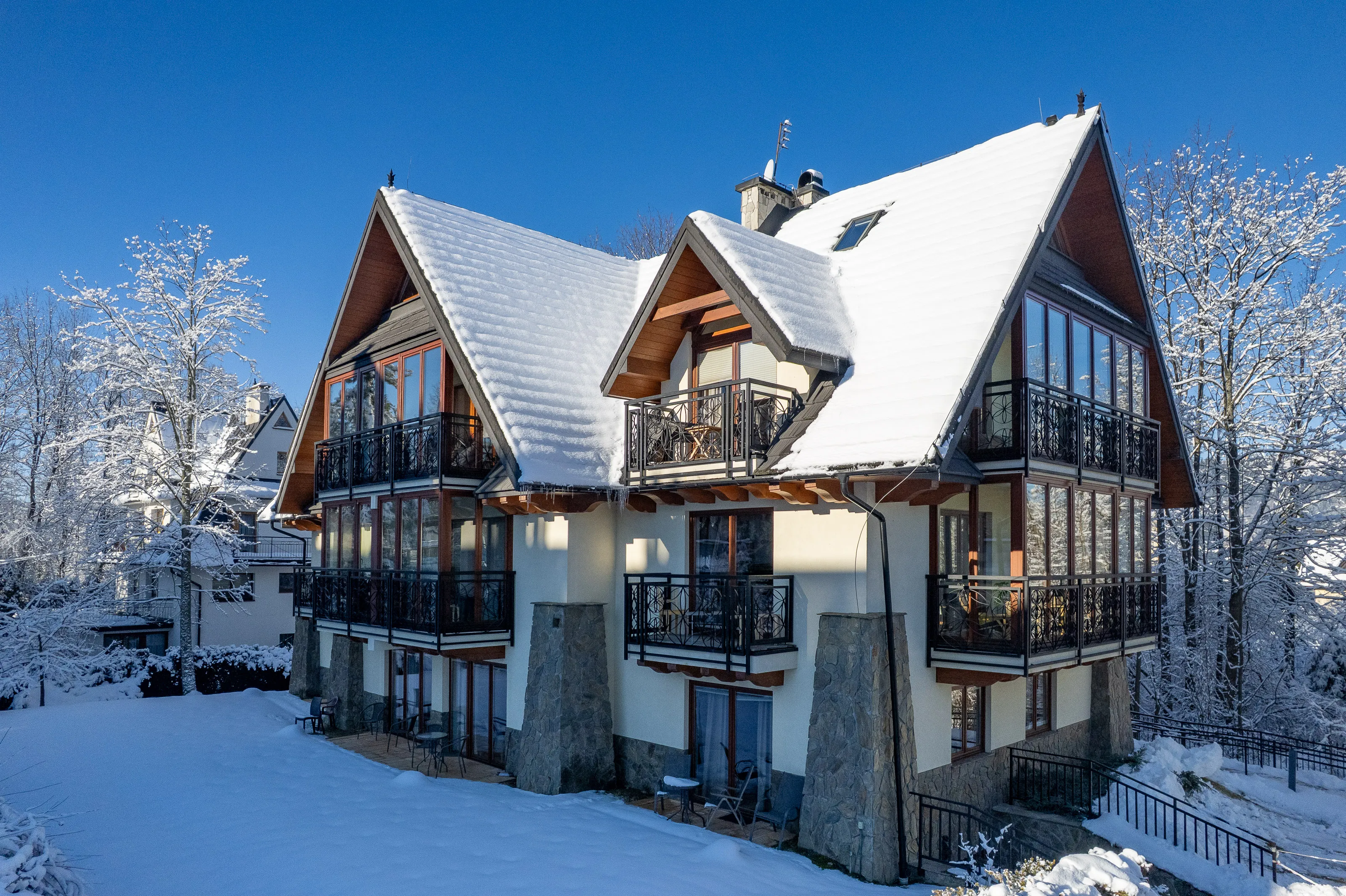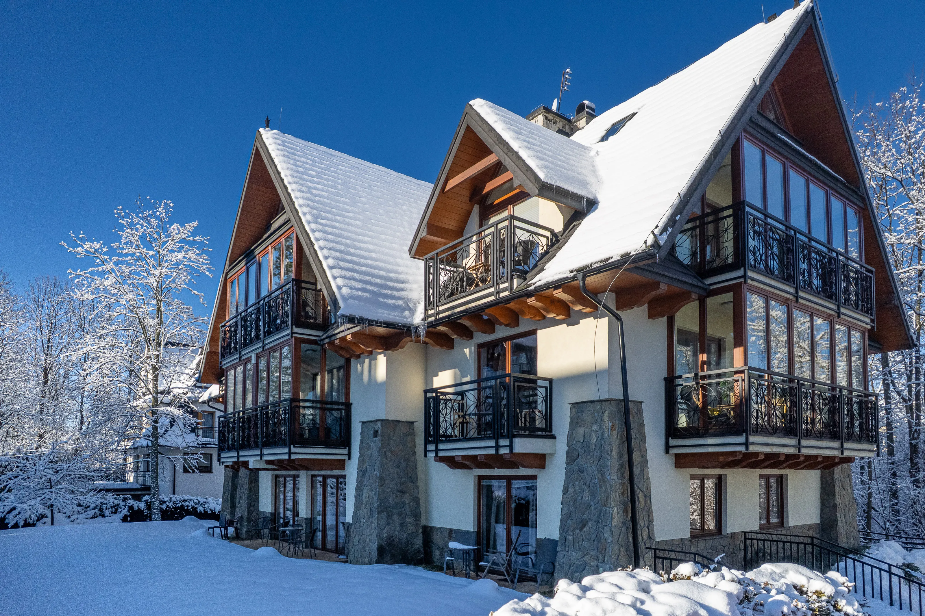 Kameralny i stylowy budynek zlokalizowany w odległości ok. 5 minut drogi od ulicy Krupówki. Cicha i spokojna okolica w ścisłym centrum Zakopanego. Bliskość szlaków turystycznych, garaż podziemny i WiFi.