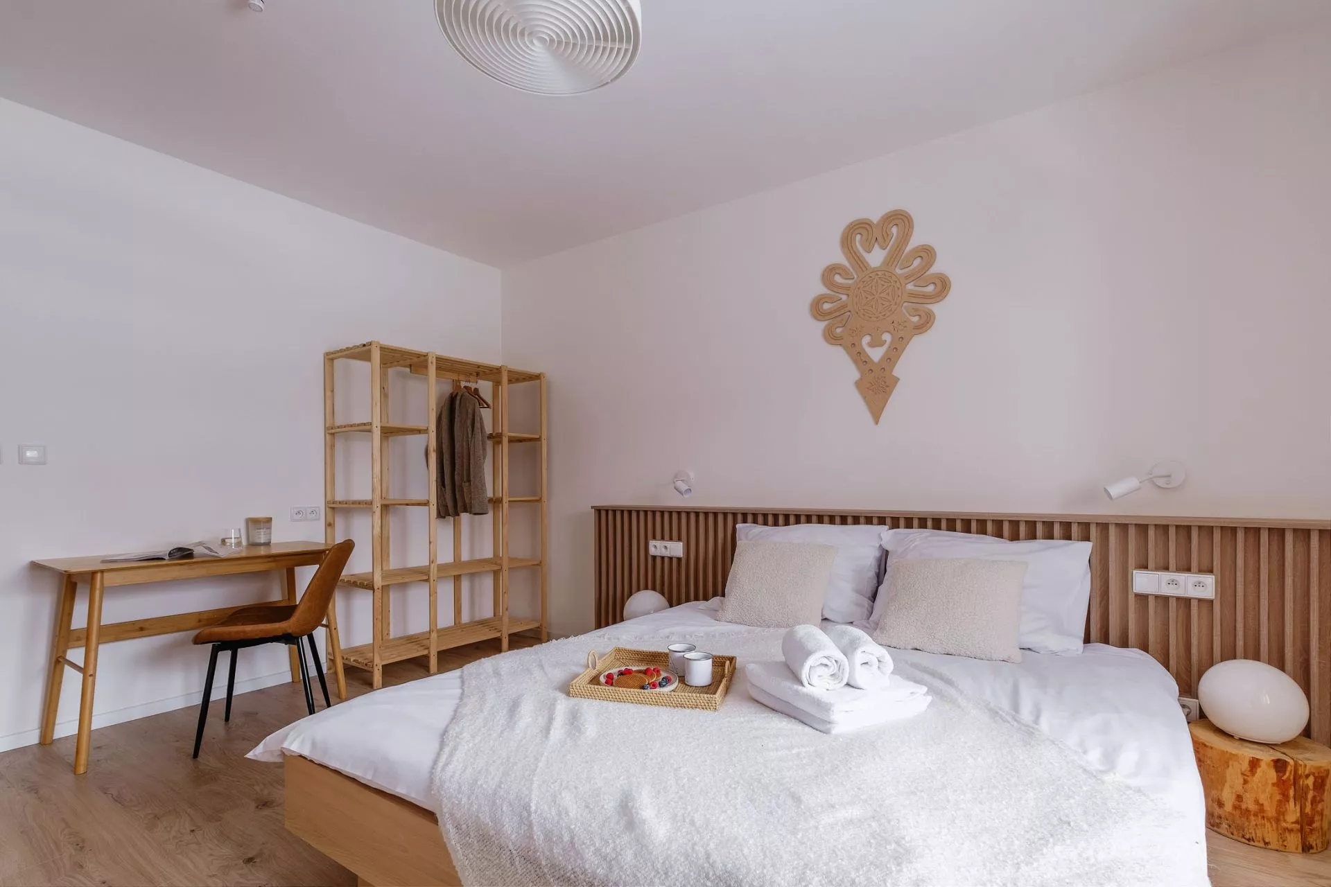 Sypialnia 2: podwójne łóżko małżeńskie, TV'42, fotel, biurko, krzesło, regał