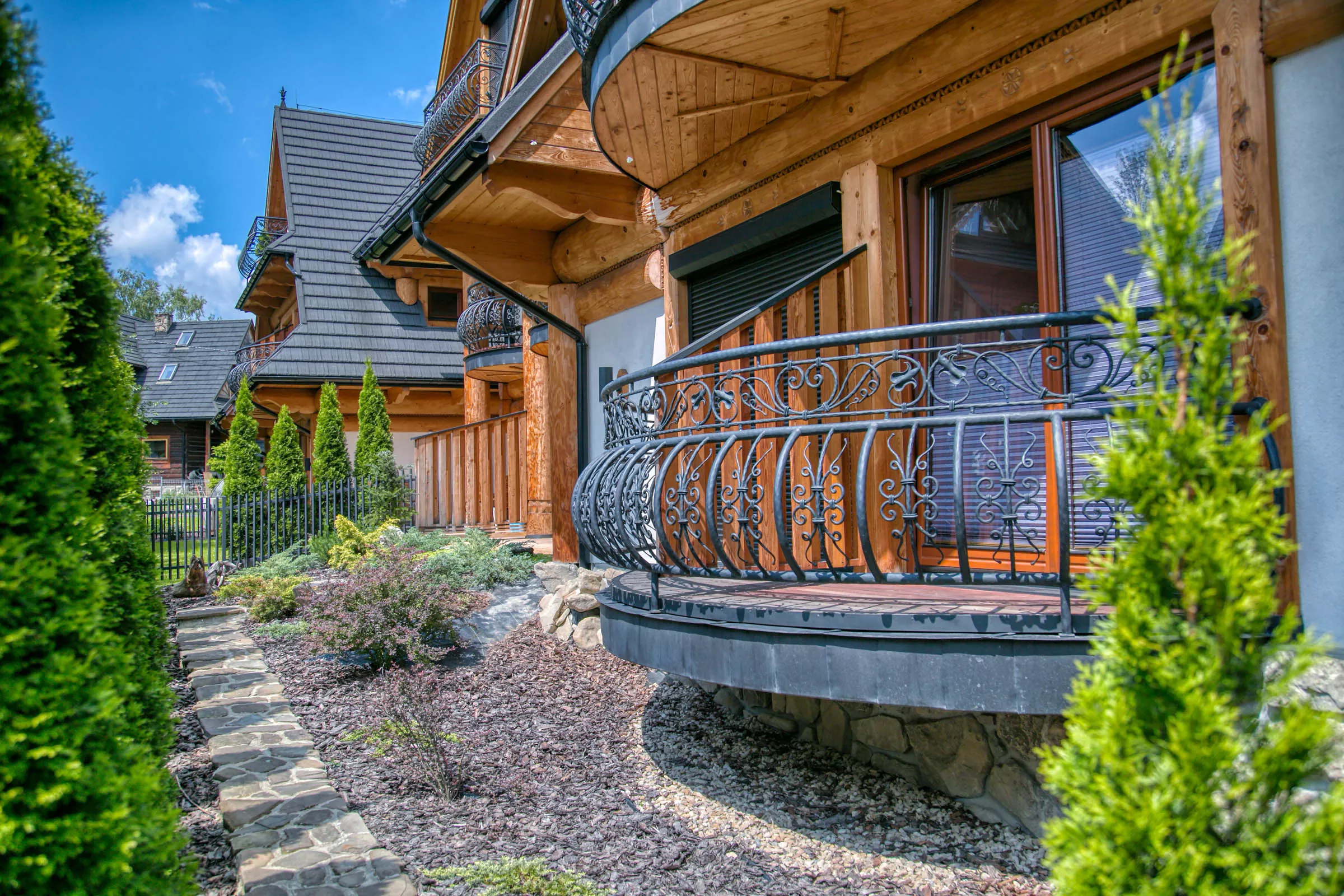 Rezydencja składa się z 2 budynków w podziemiach których znajdują się podziemne garaże. W każdym z nich znajduje się winda prowadząca na piętra bezpośrednio z poziomu garażowego. Elewacja budynku w swoim charakterze nawiązuje do zakopiańskiego stylu i jednocześnie w nowoczesny sposób łączy elementy drewna, kamienia i kutej stali.