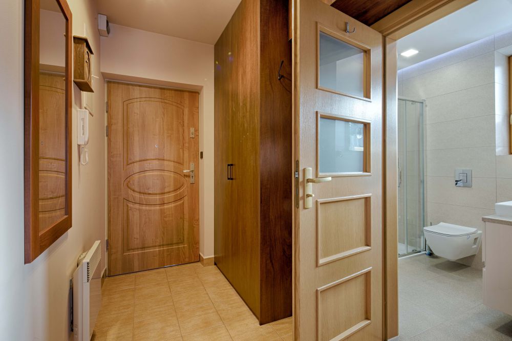 Dodatkowe wyposażenie apartamentu: żelazko, deska do prasowania, łóżeczko dziecięce, krzesełko do karmienia dla dzieci